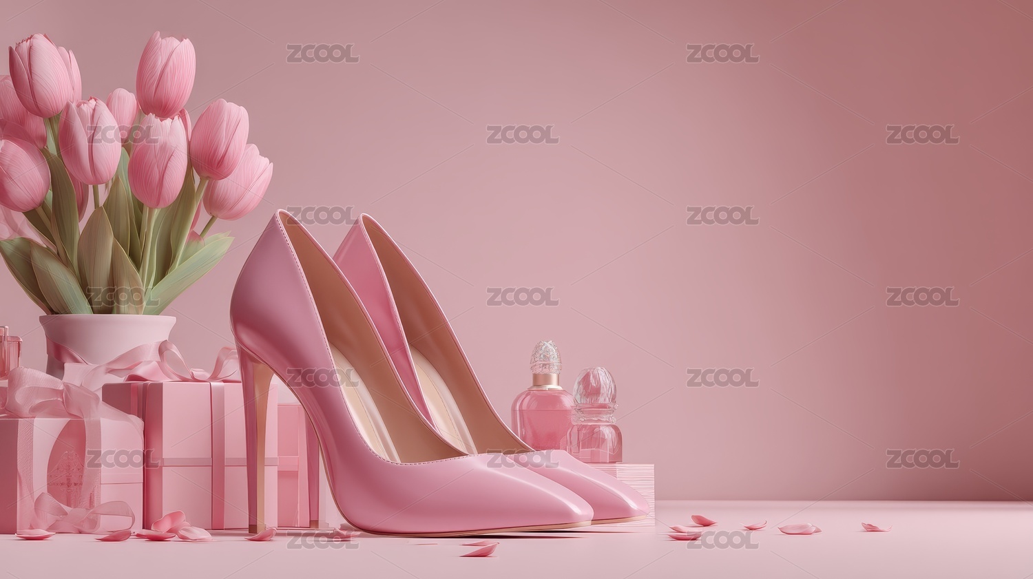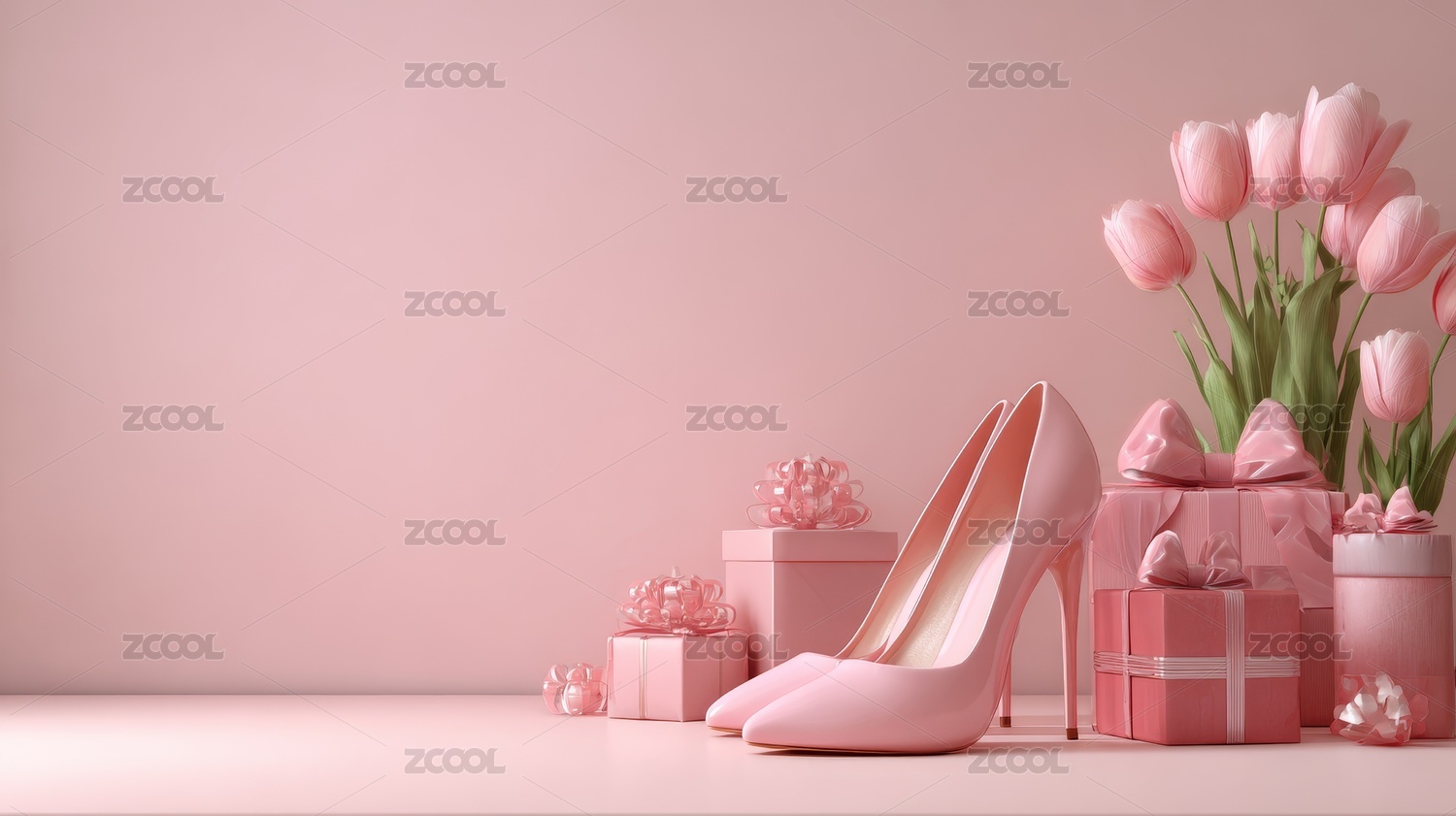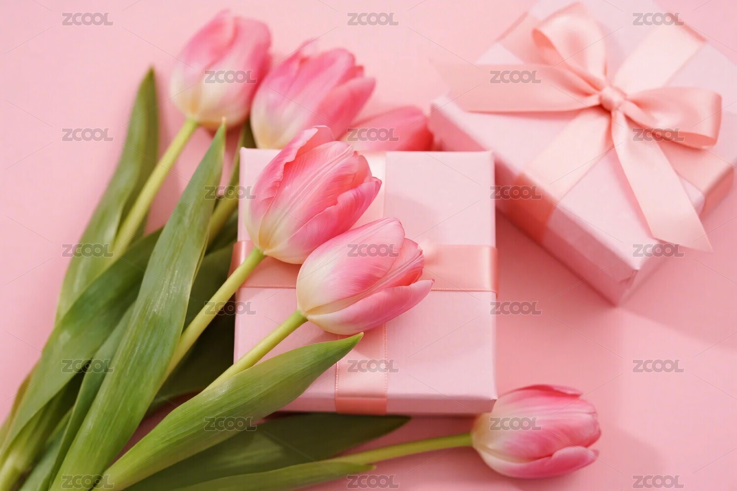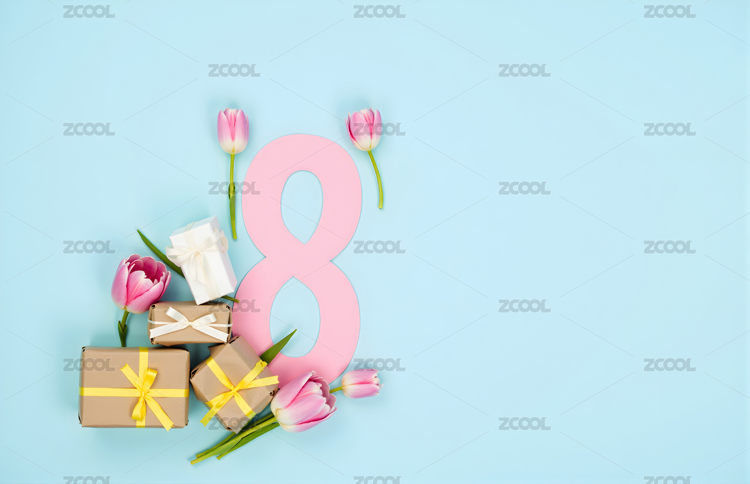 藍(lán)色背景的數(shù)字 8 與郁金香禮盒