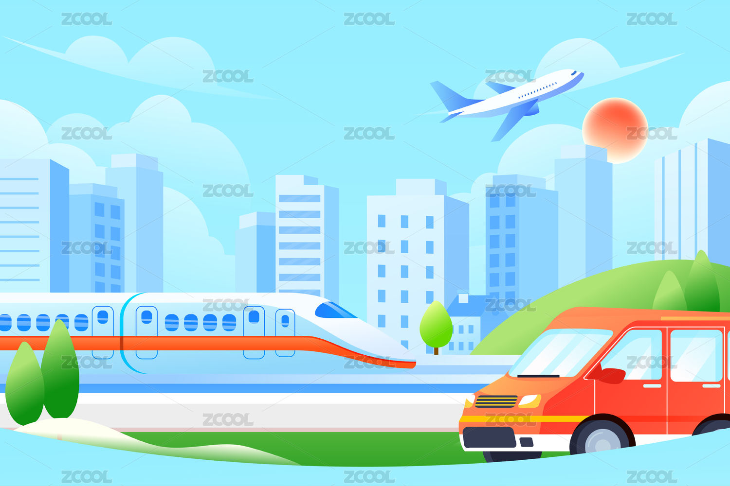 五一勞動節(jié)小長假高鐵出行城市旅游度假插畫