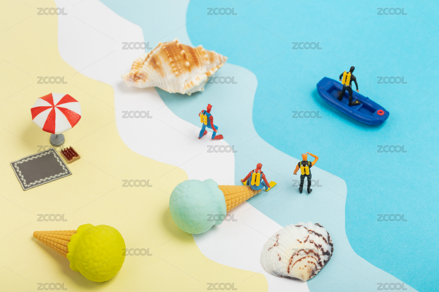 微縮場景夏天海灘海邊度假游泳潛水人群