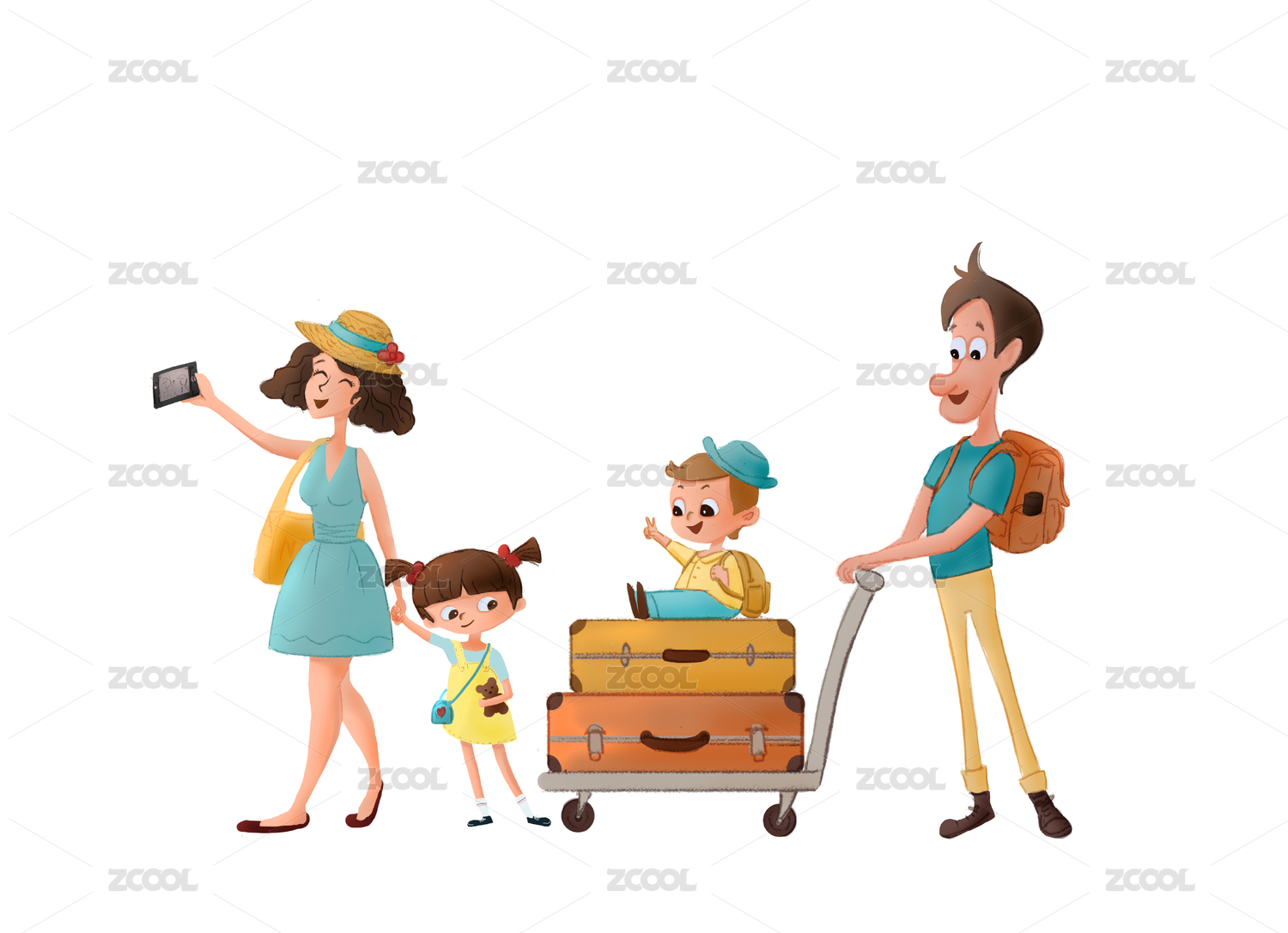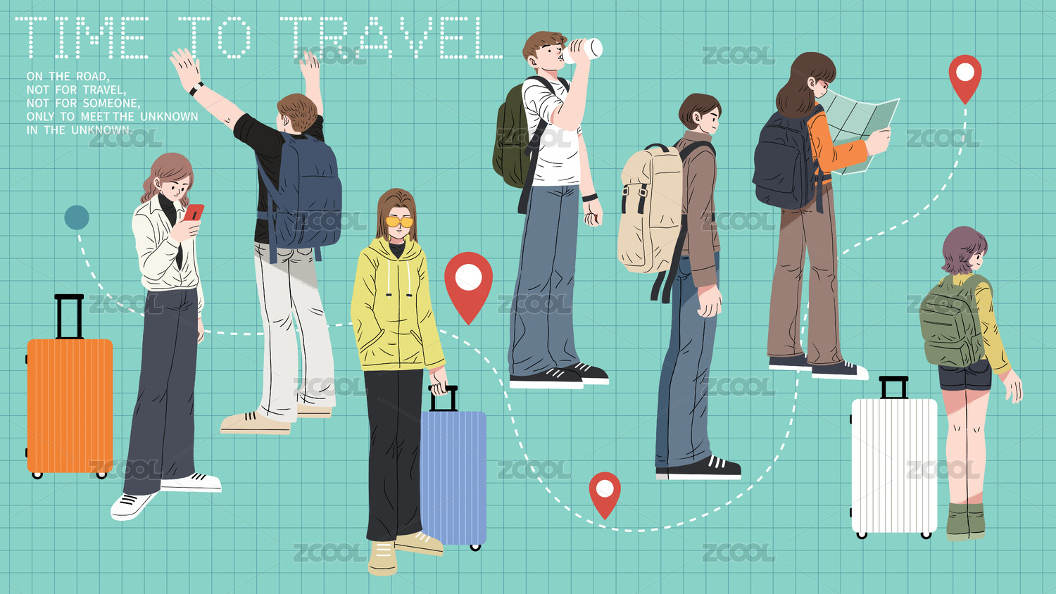 矢量插畫小長假一群去旅行的人