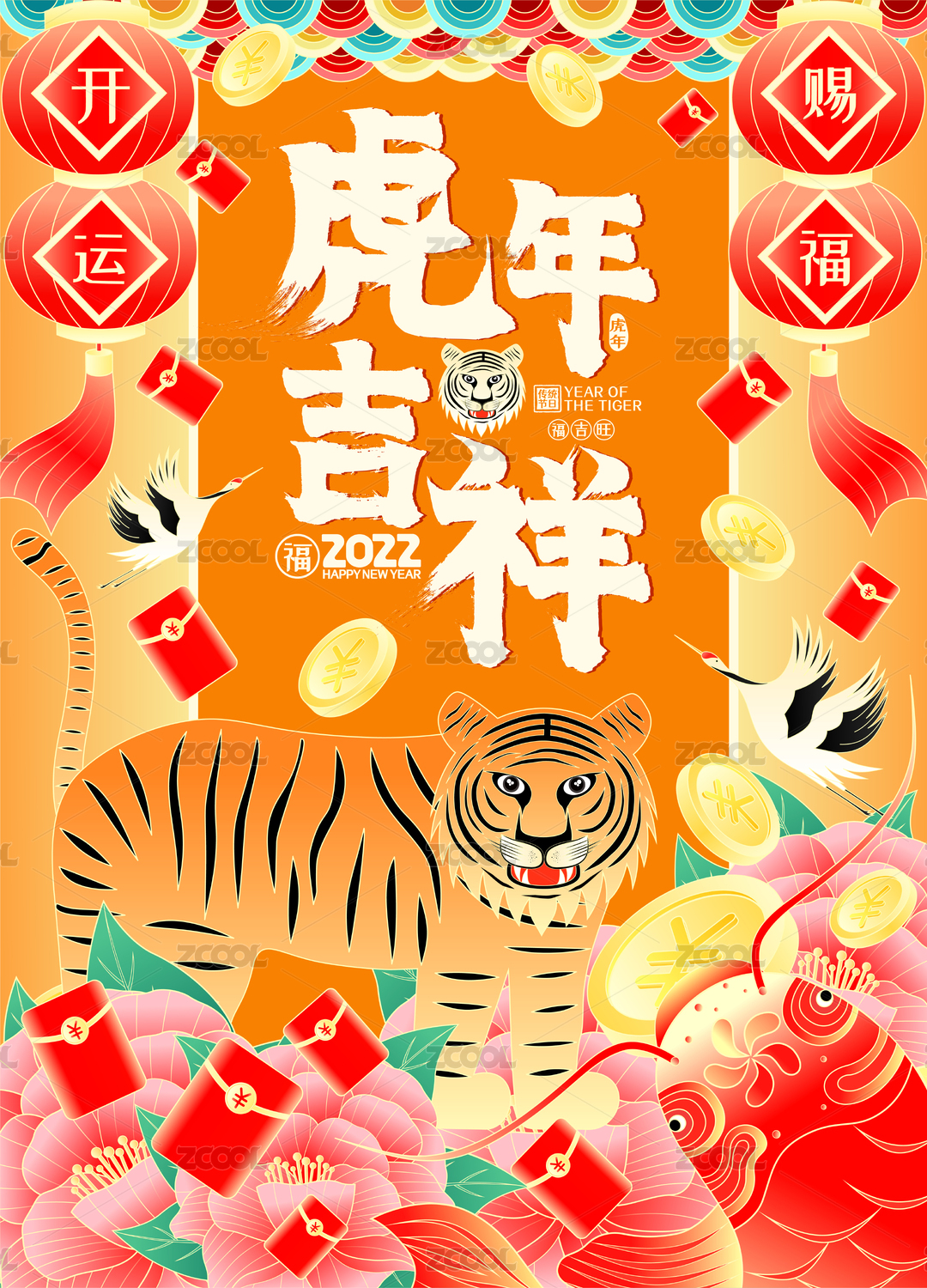 新年虎年吉祥如意發(fā)財喜慶插畫海報