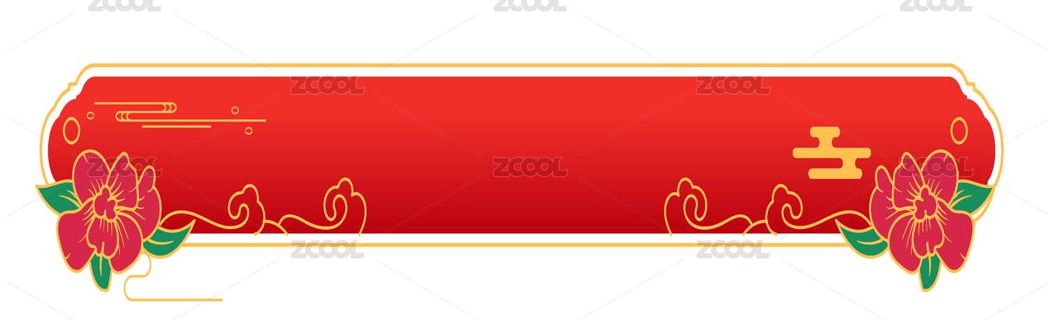 中國風矢量紅色花朵海浪祥云新年喜慶標題框