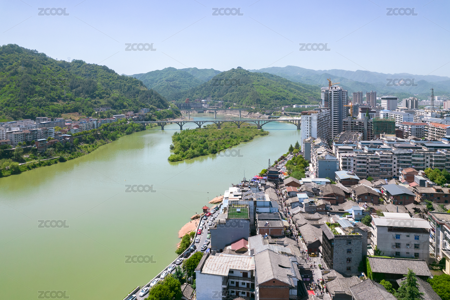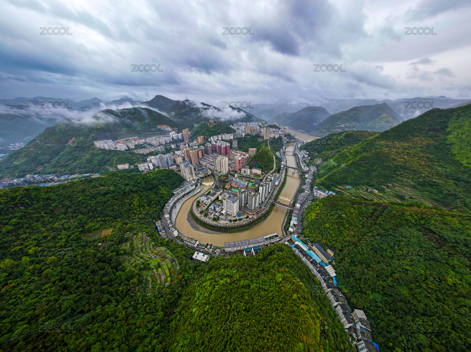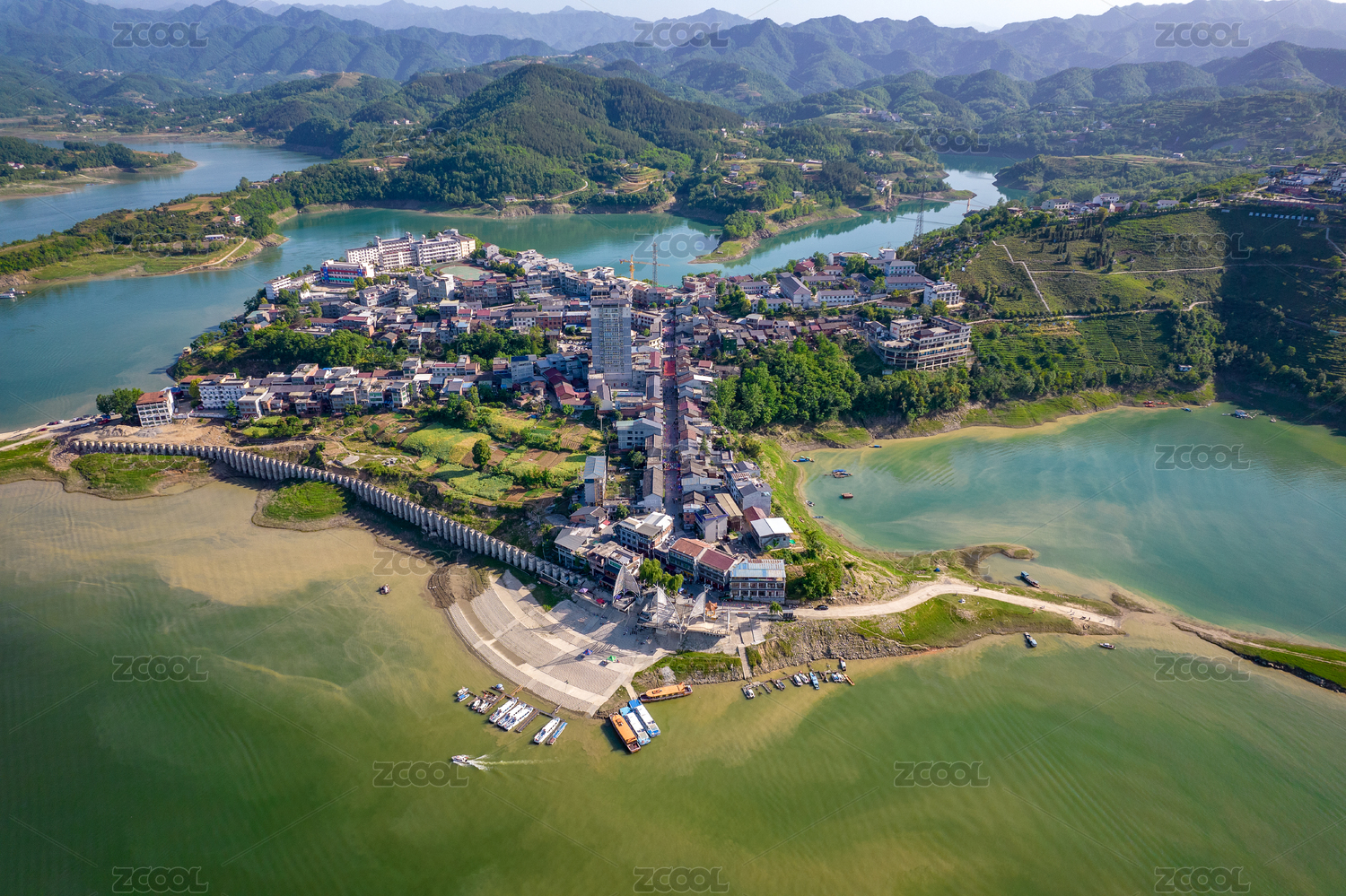中國陜西省安康市漢濱區(qū)流水古鎮(zhèn)航拍