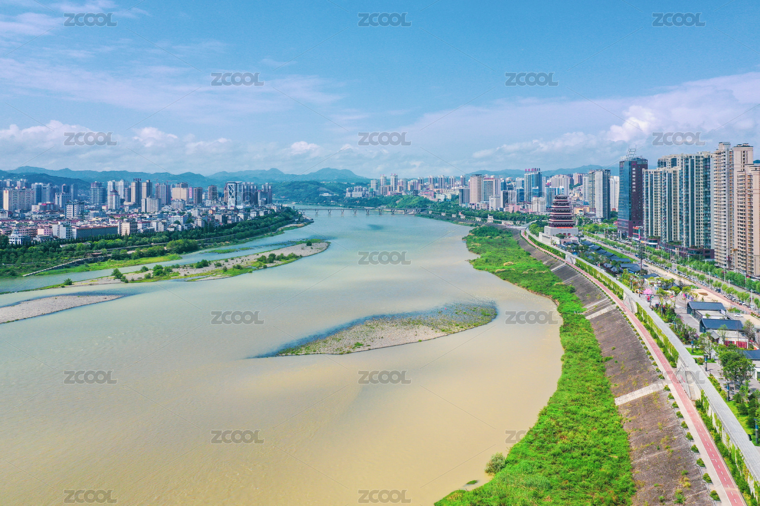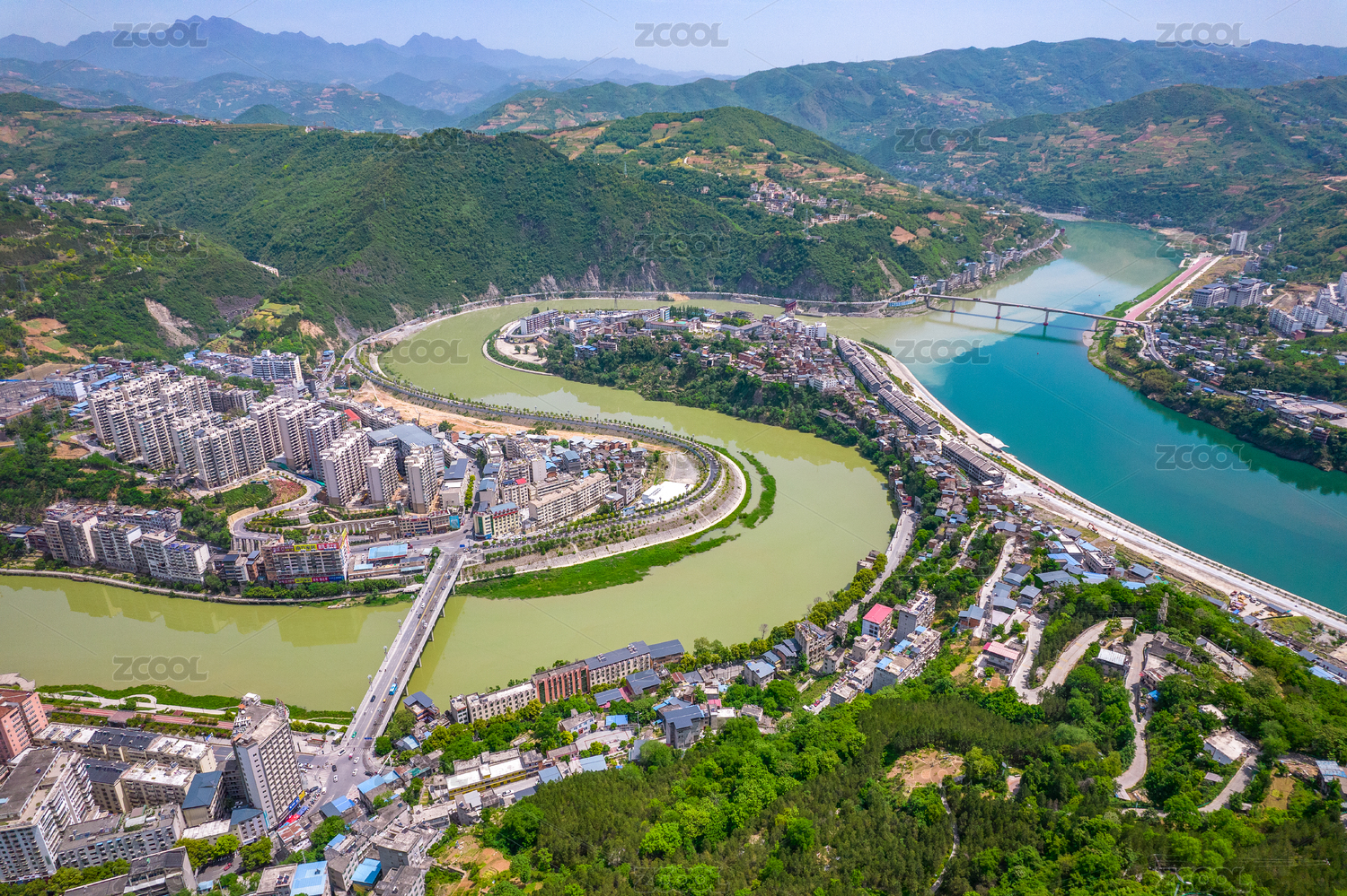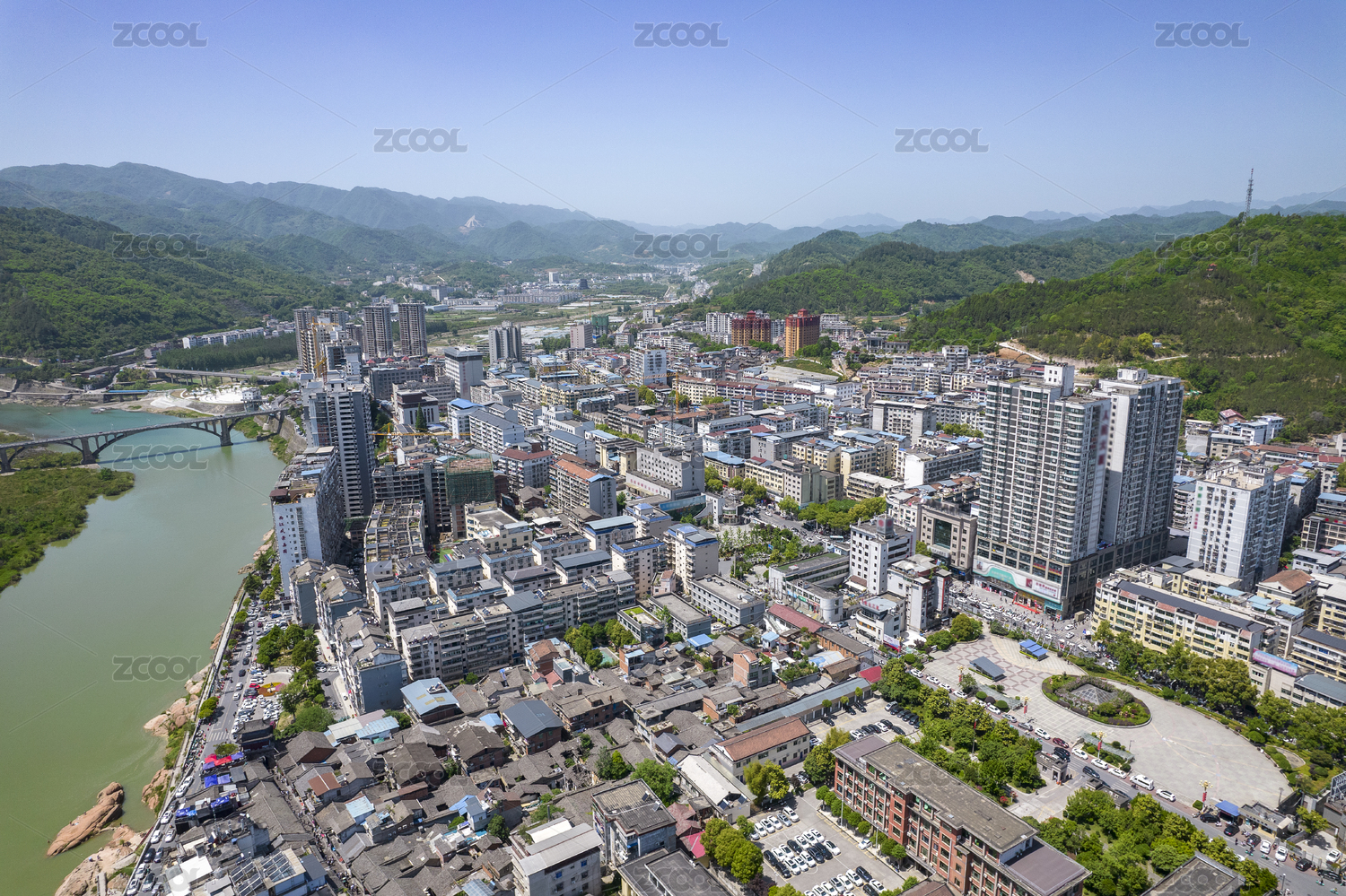 中國陜西省安康市漢濱區(qū)流水古鎮(zhèn)航拍