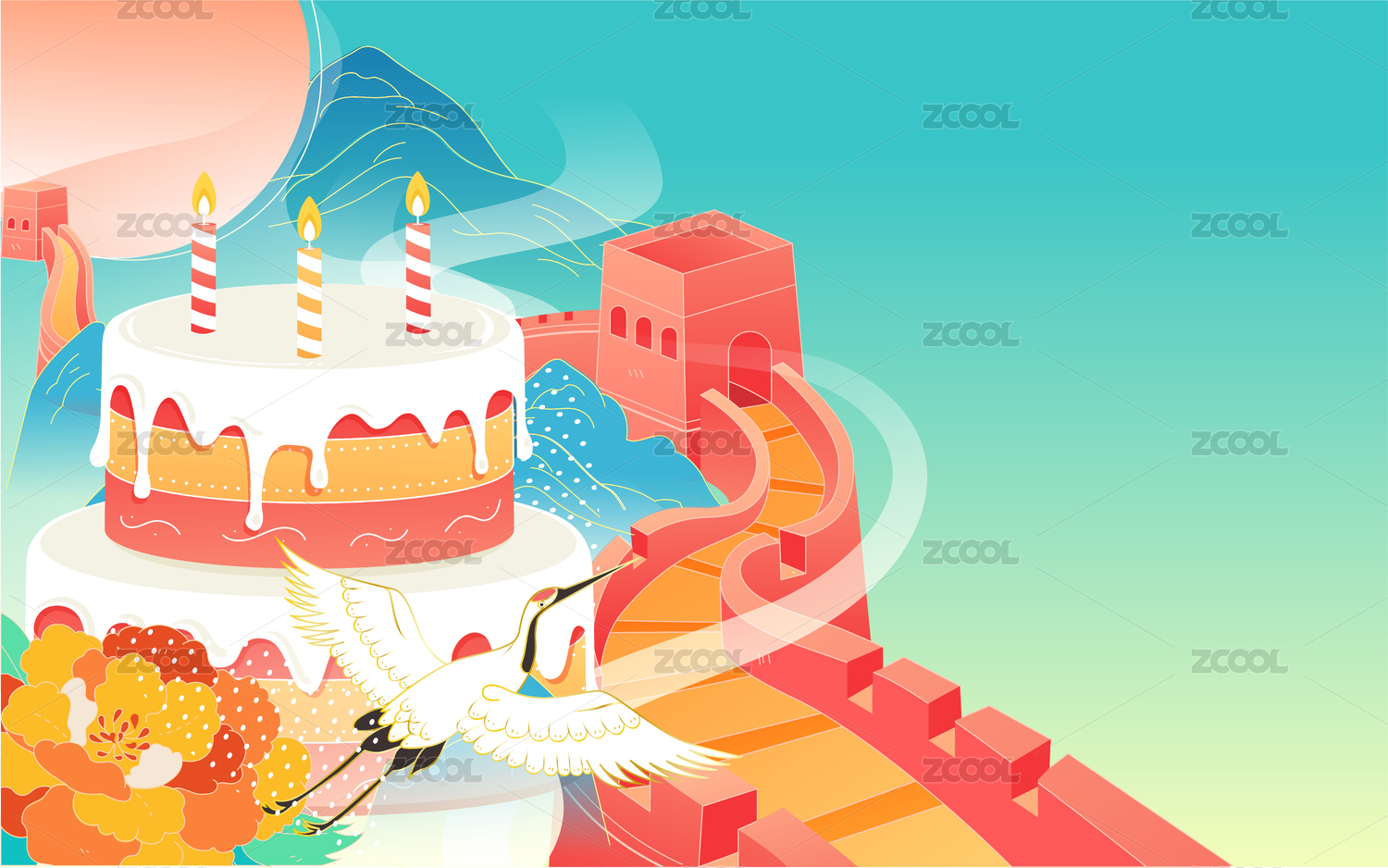國(guó)慶節(jié)海報(bào)國(guó)慶長(zhǎng)假慶祝祖國(guó)生日蛋糕插畫(huà)