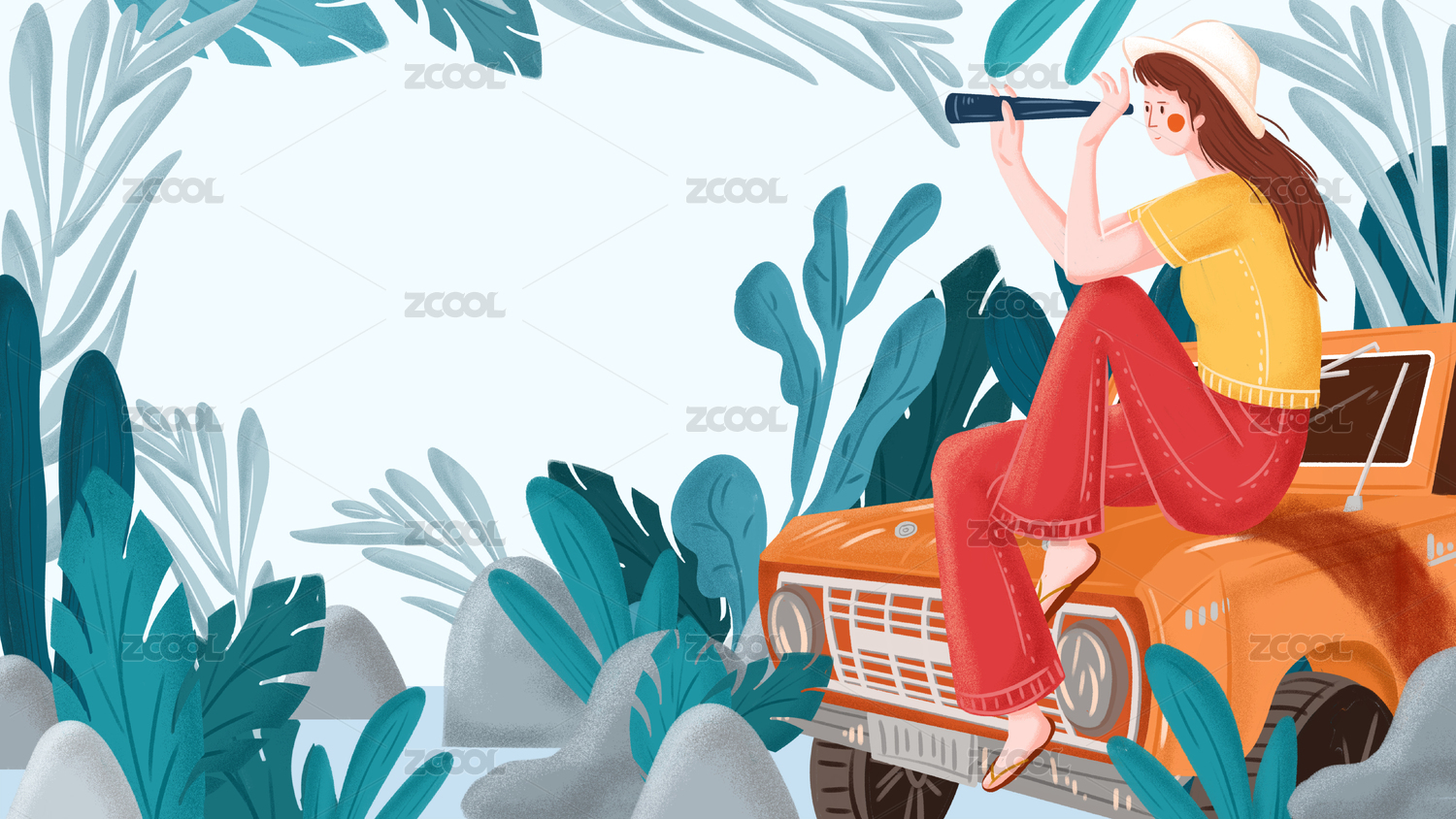 banner開(kāi)屏插畫(huà)夏日長(zhǎng)假度假戶(hù)外活動(dòng)