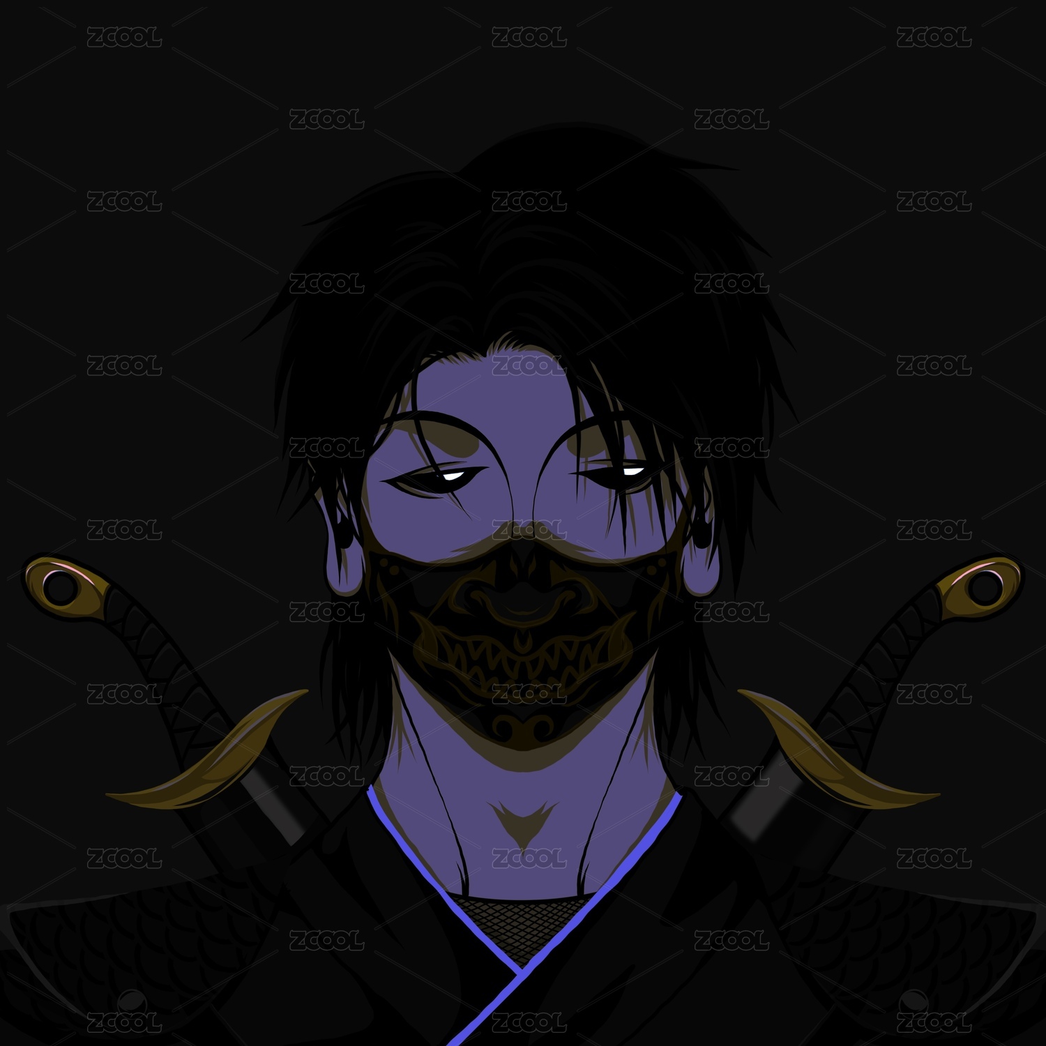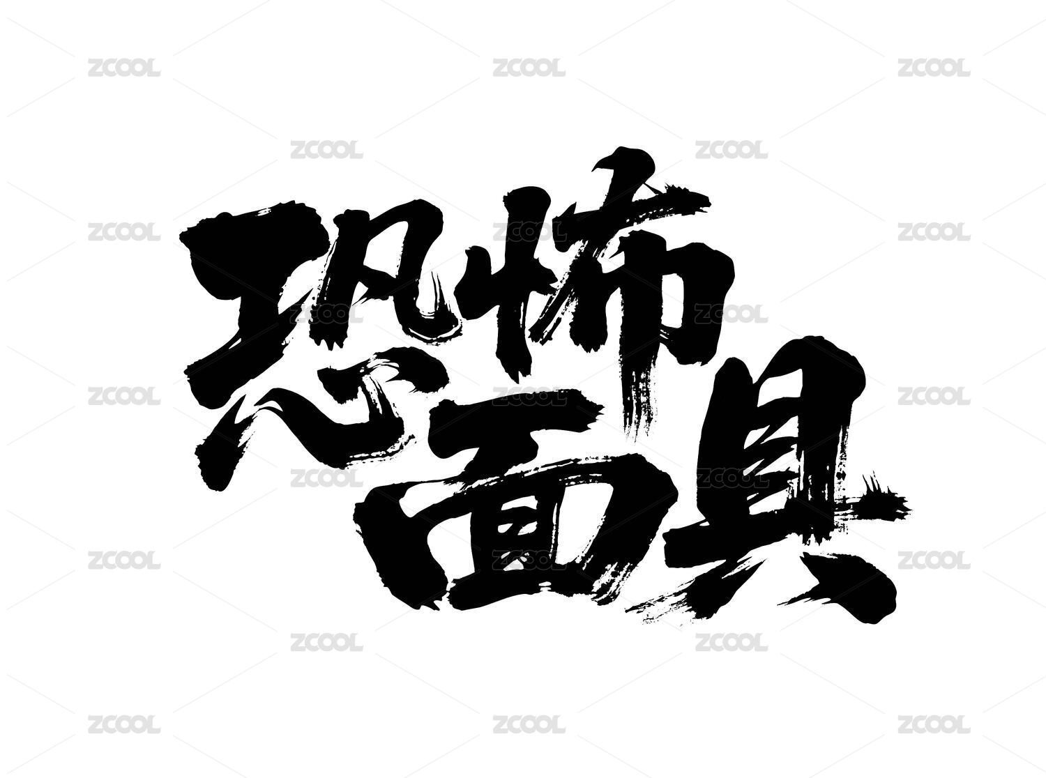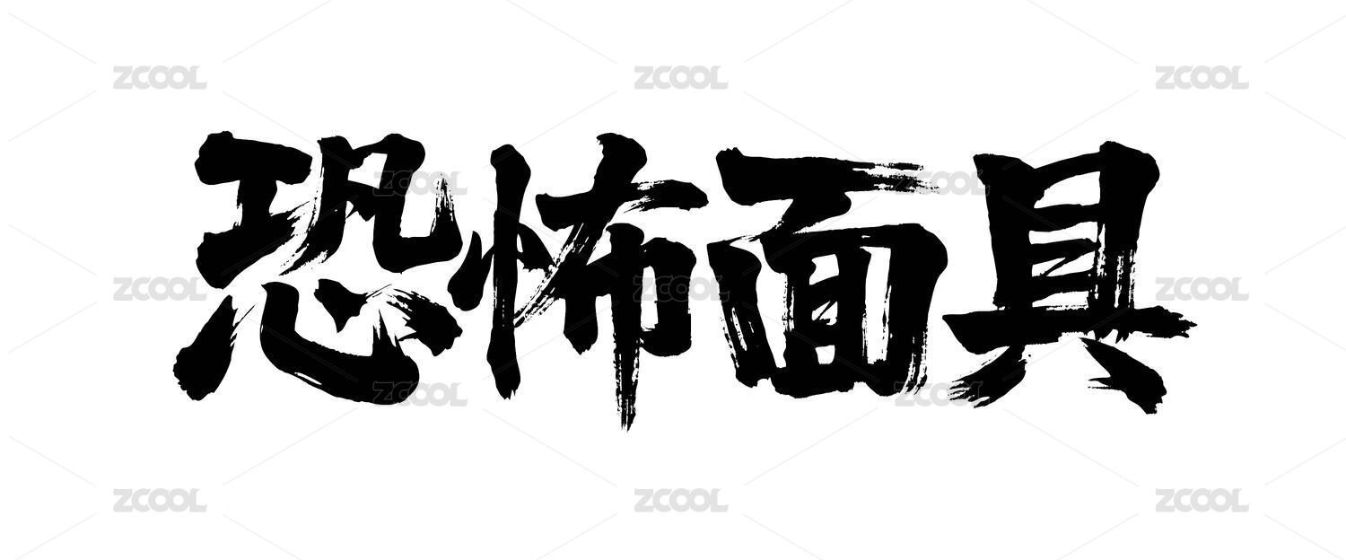 恐怖面具矢量書法手寫毛筆字