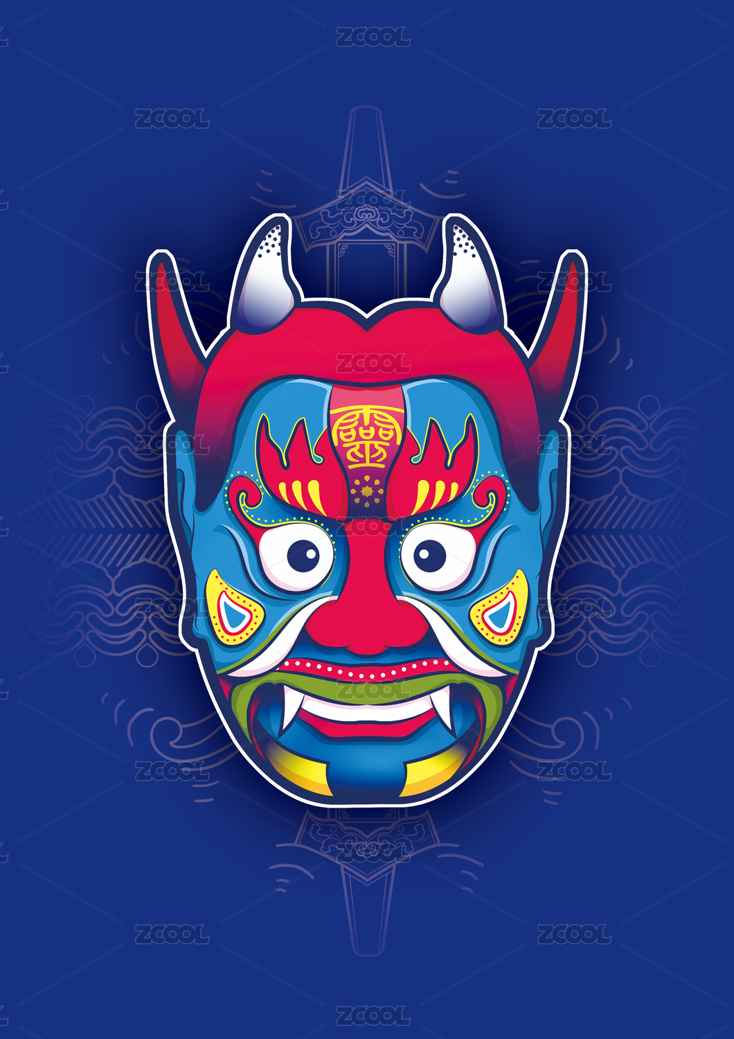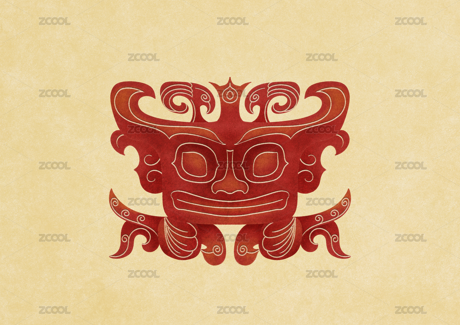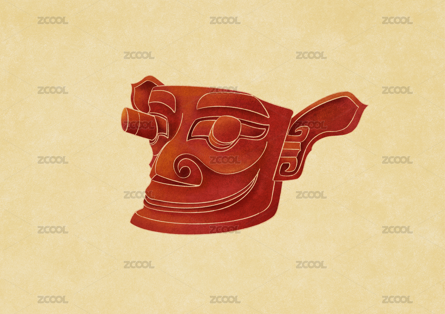 三星堆面具抽象藝術(shù)創(chuàng)意矢量背景