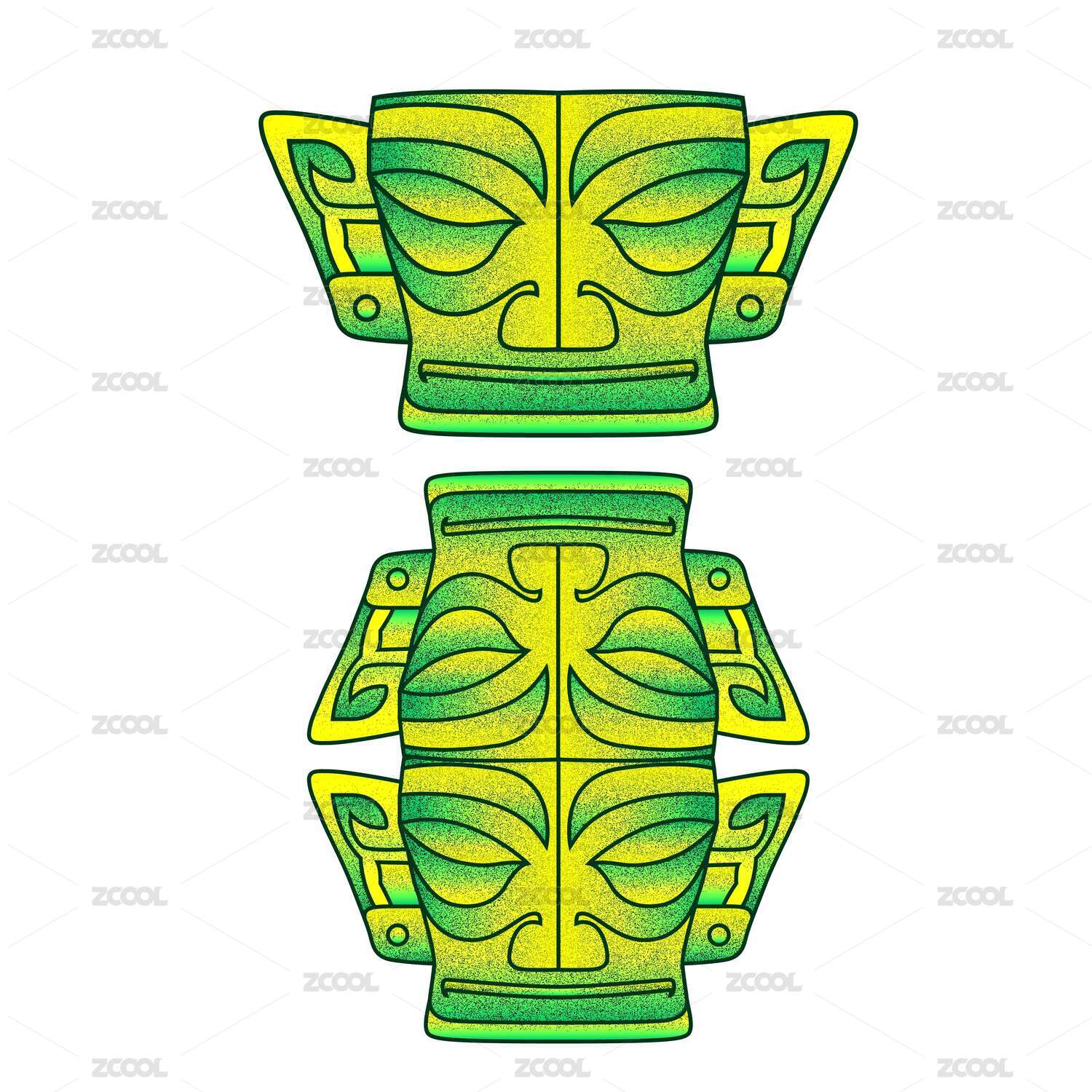 三星堆面具矢量藝術(shù)插畫