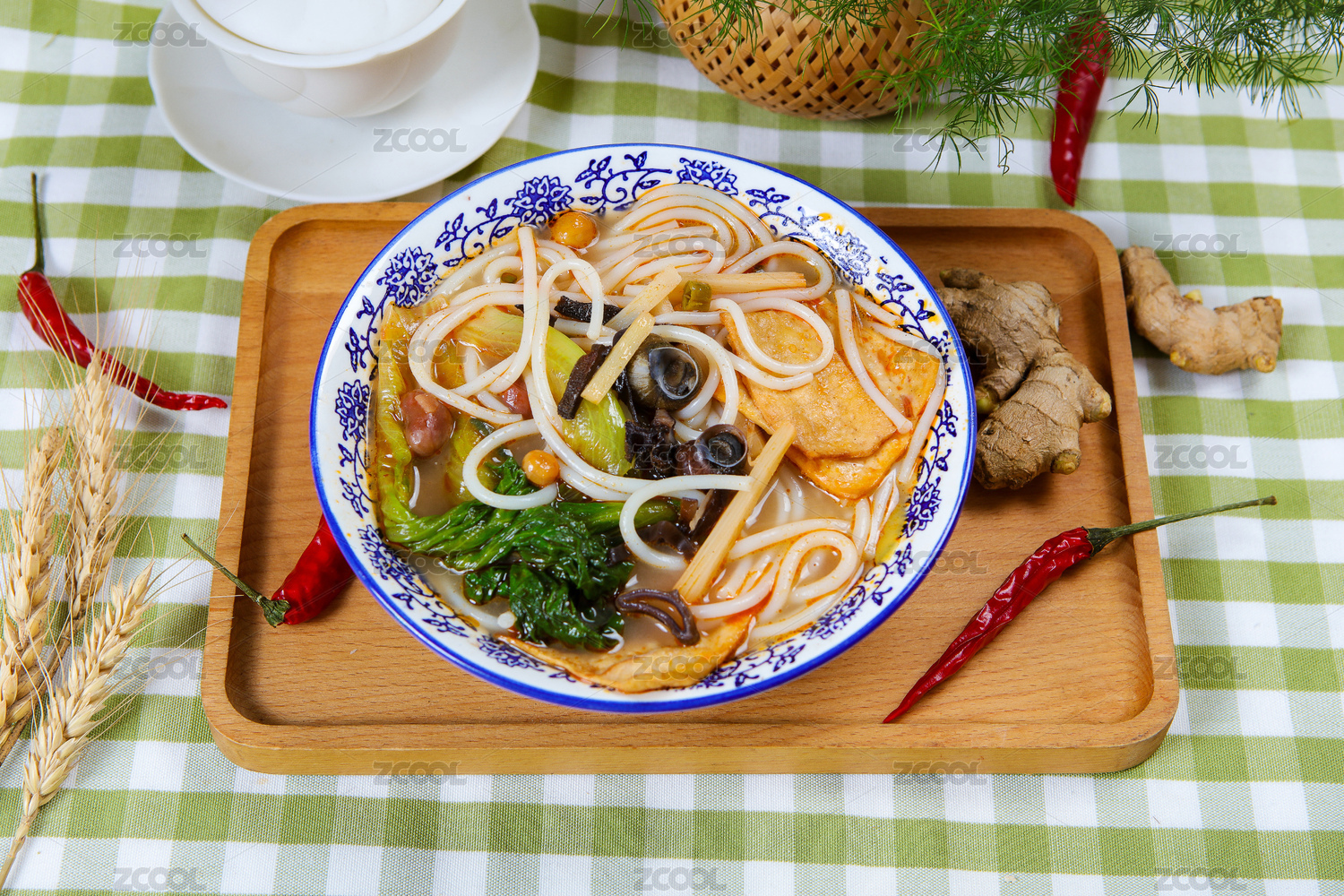 棕色餐墊上的廣西特色美食螺螄粉