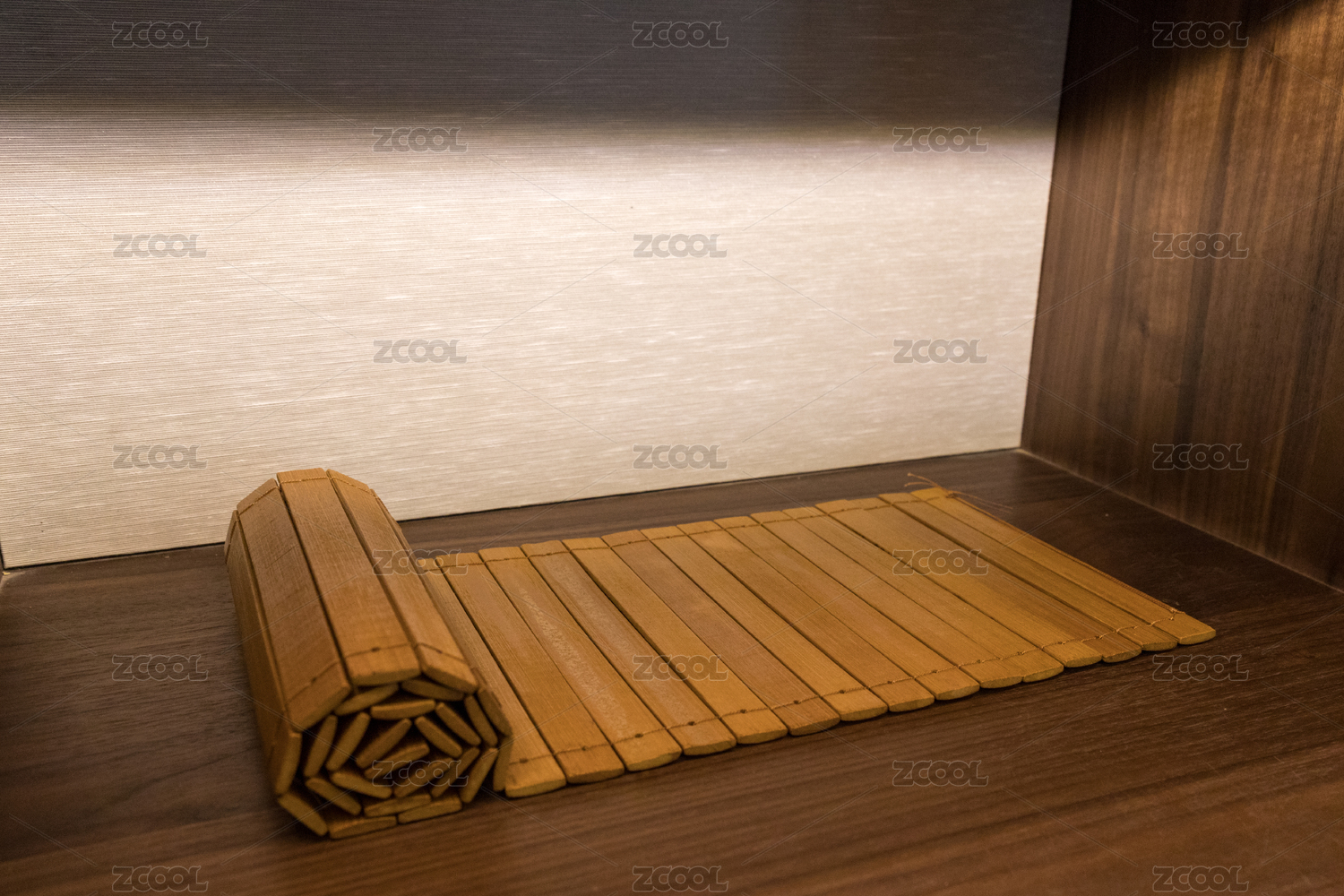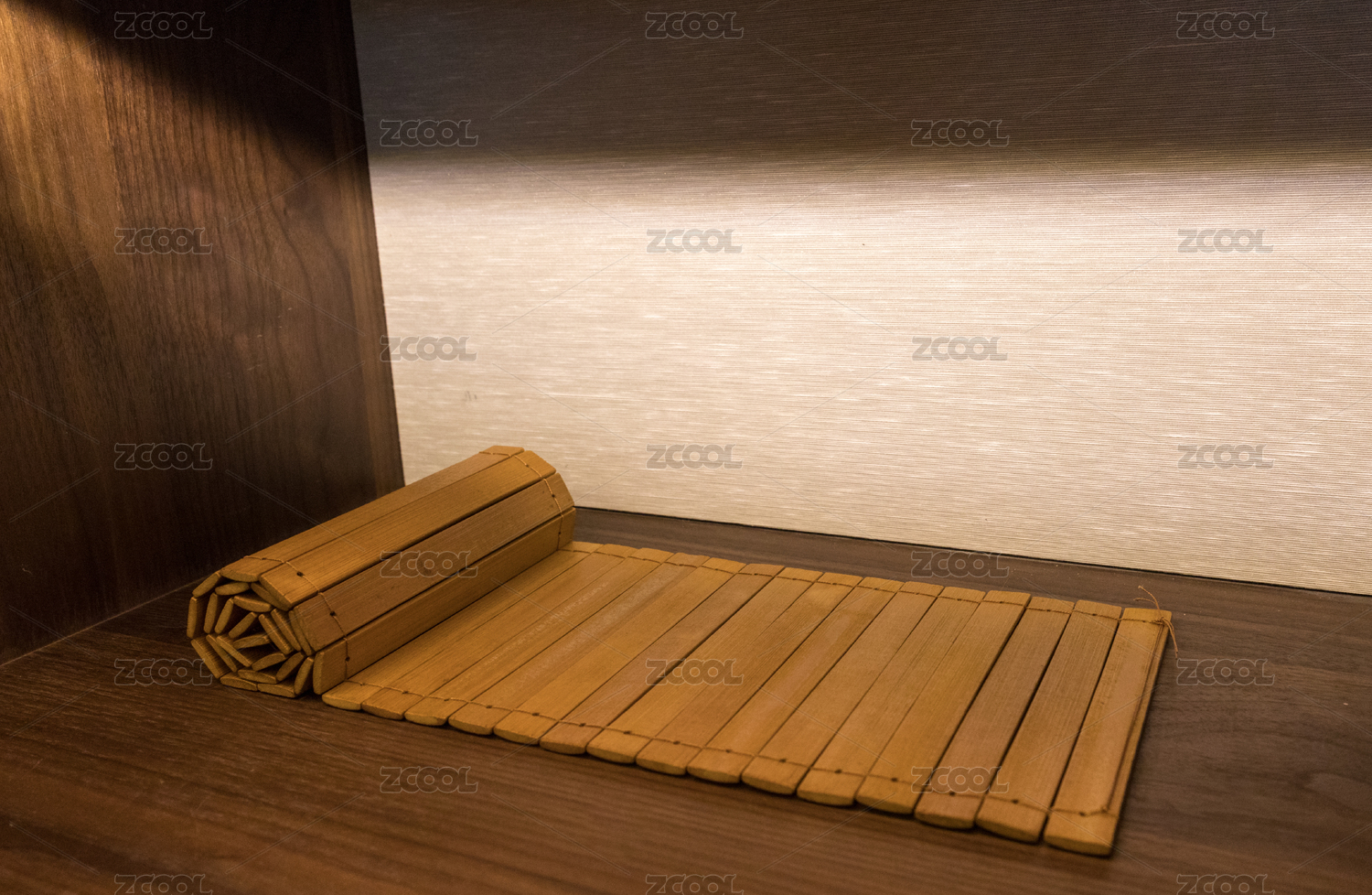 書柜上攤開的一份空白竹簡斜角度