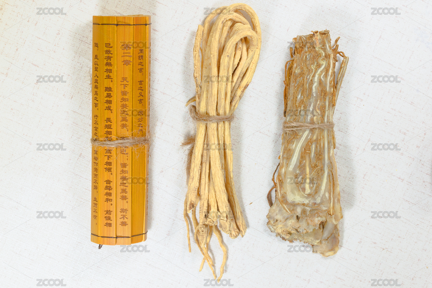 中藥材黨參、當歸與竹簡