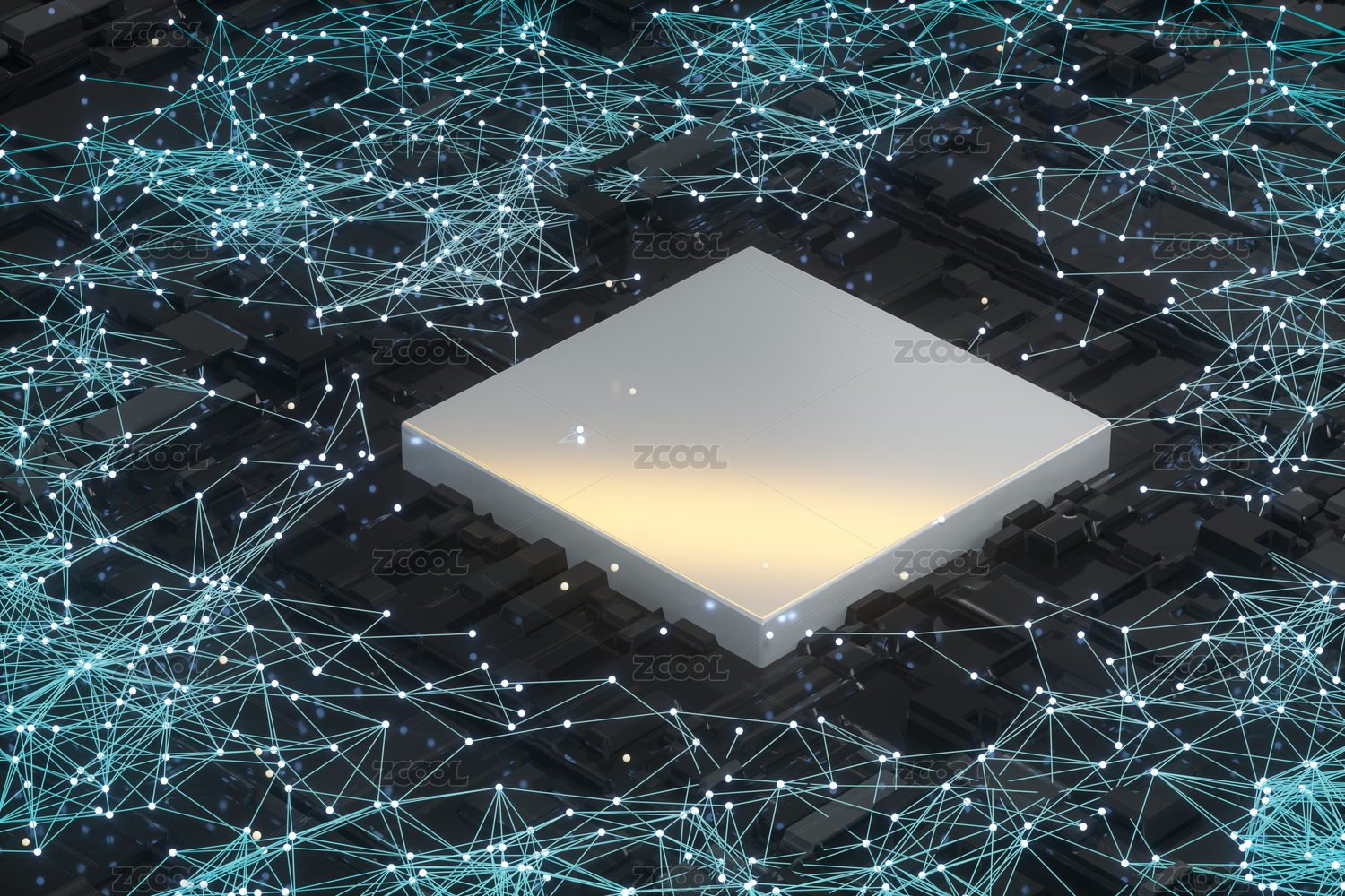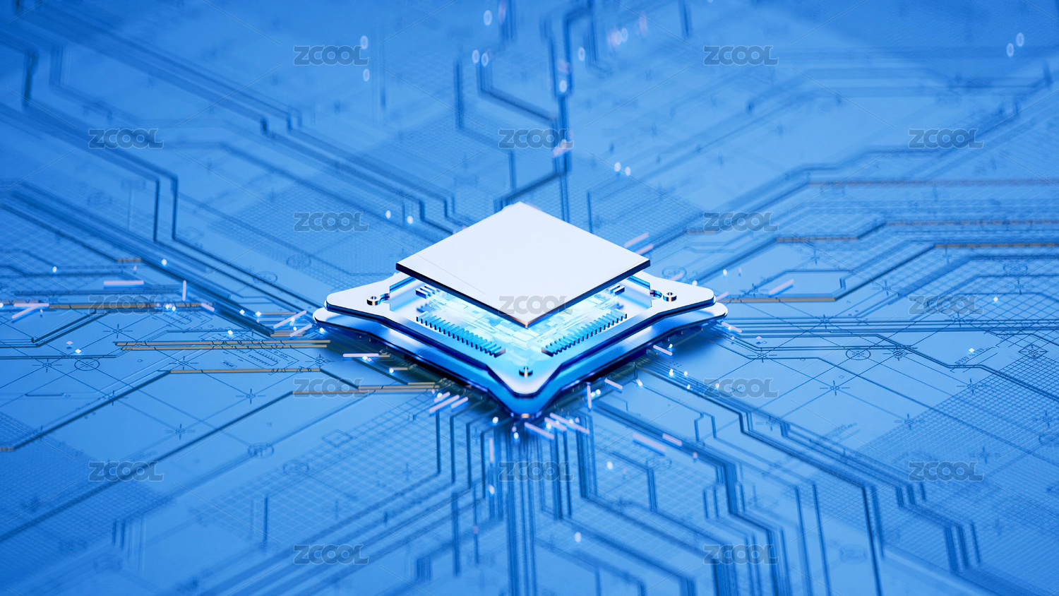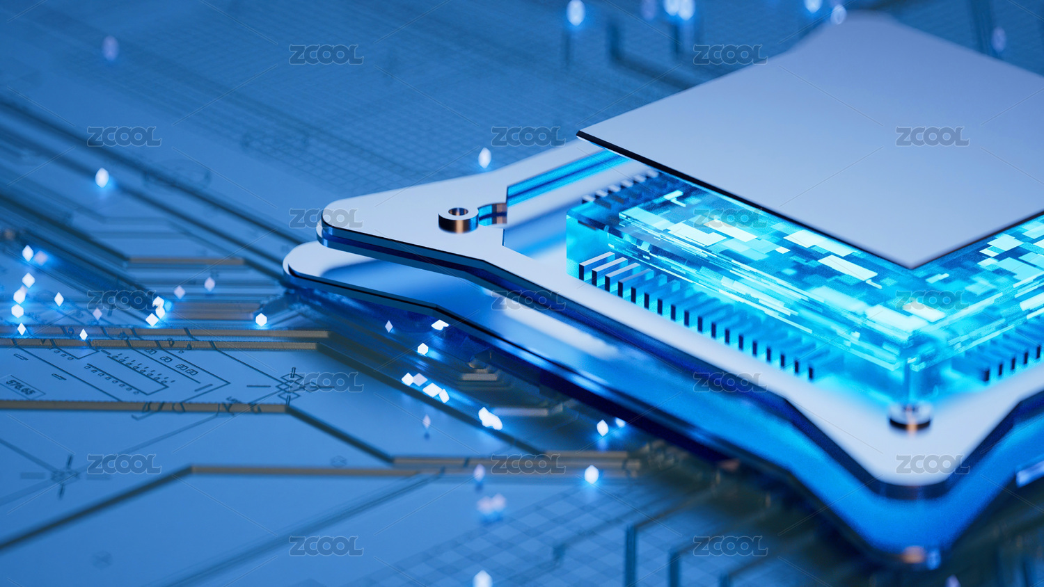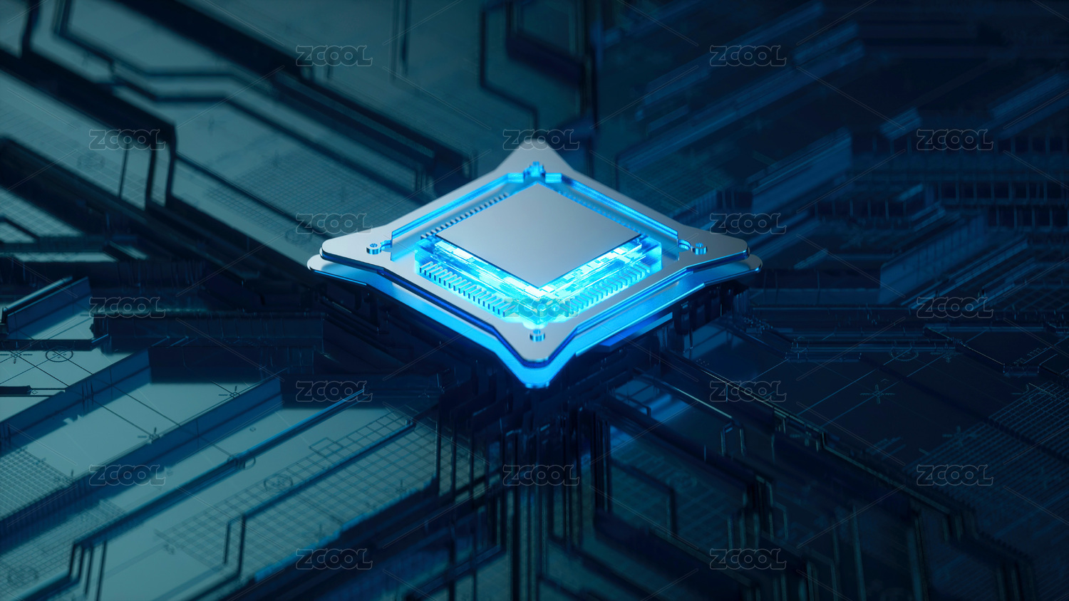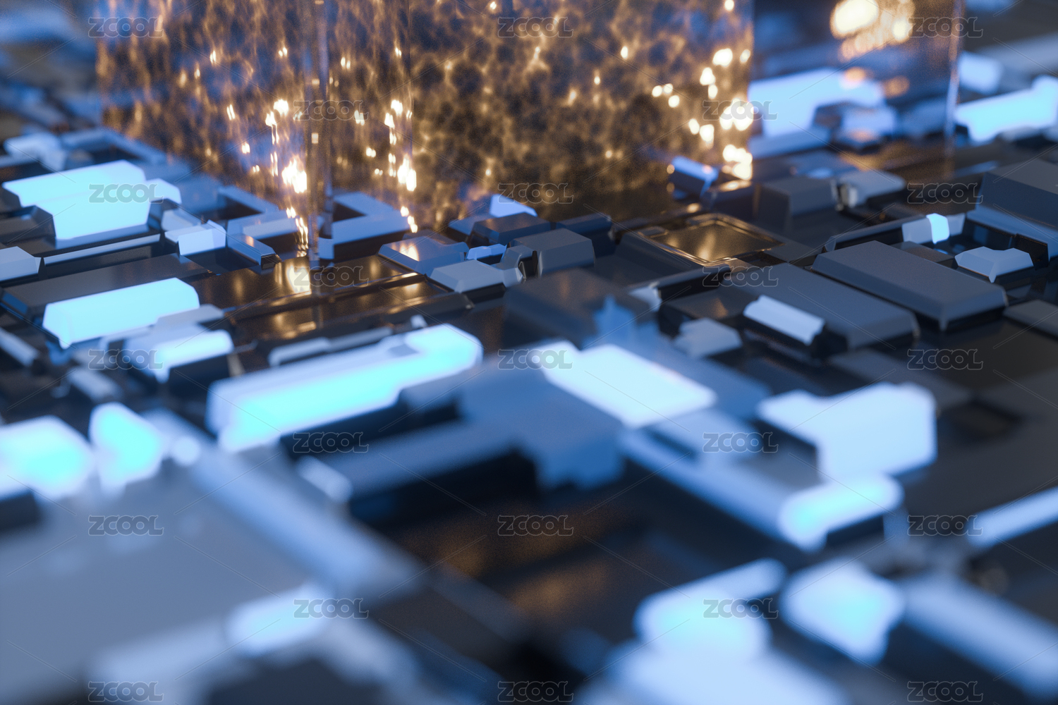 電路板發(fā)光模塊科幻背景 三維渲染