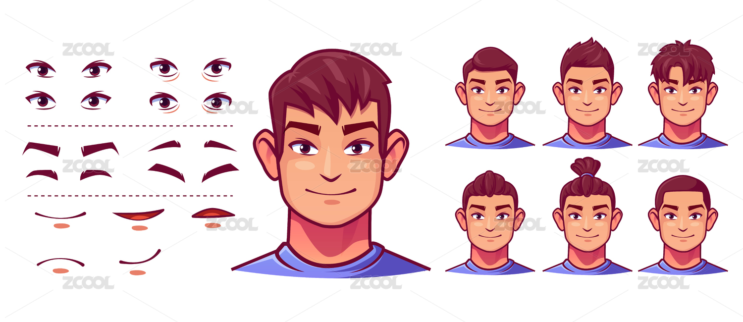 人物頭像表情包模塊組合矢量插畫