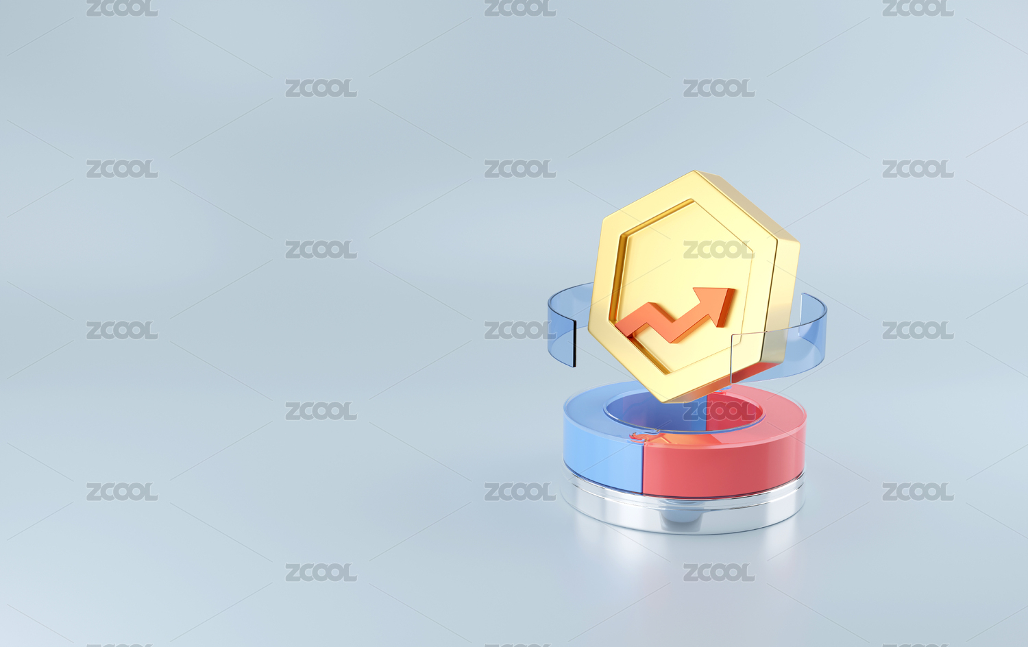 環(huán)形拼接模塊與向上箭頭金幣組合金融理財(cái)