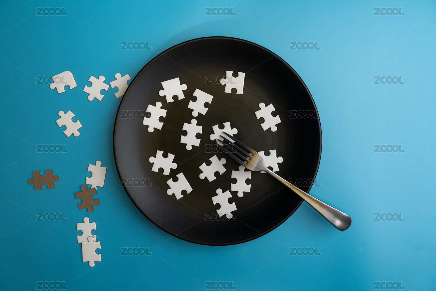 放在黑色盤子中的拼圖模塊微縮靜物照