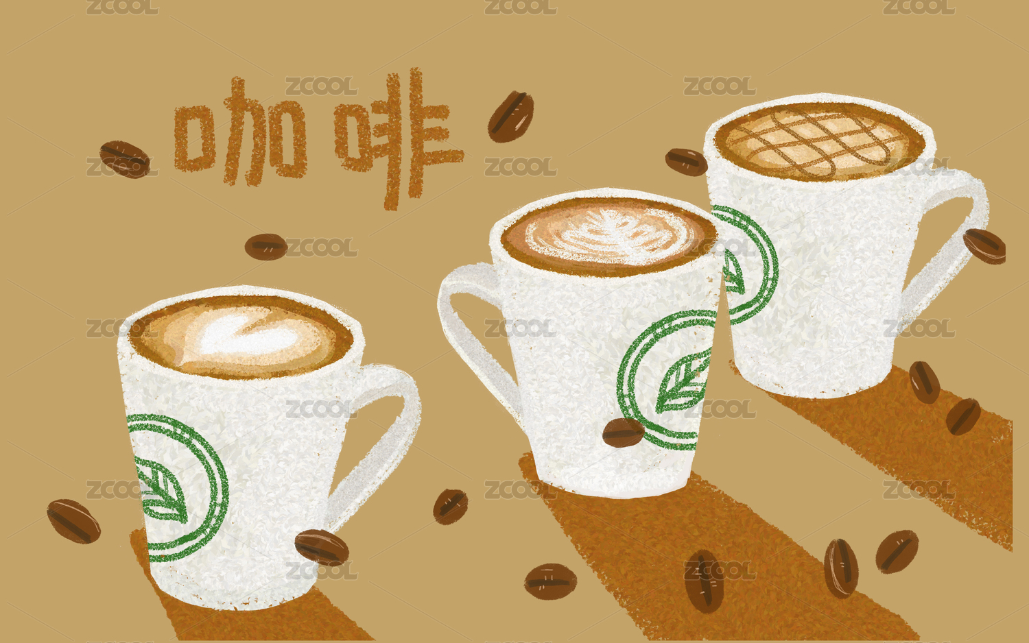 花式咖啡和散落的咖啡豆橫版海報(bào) 手繪插畫海報(bào)
