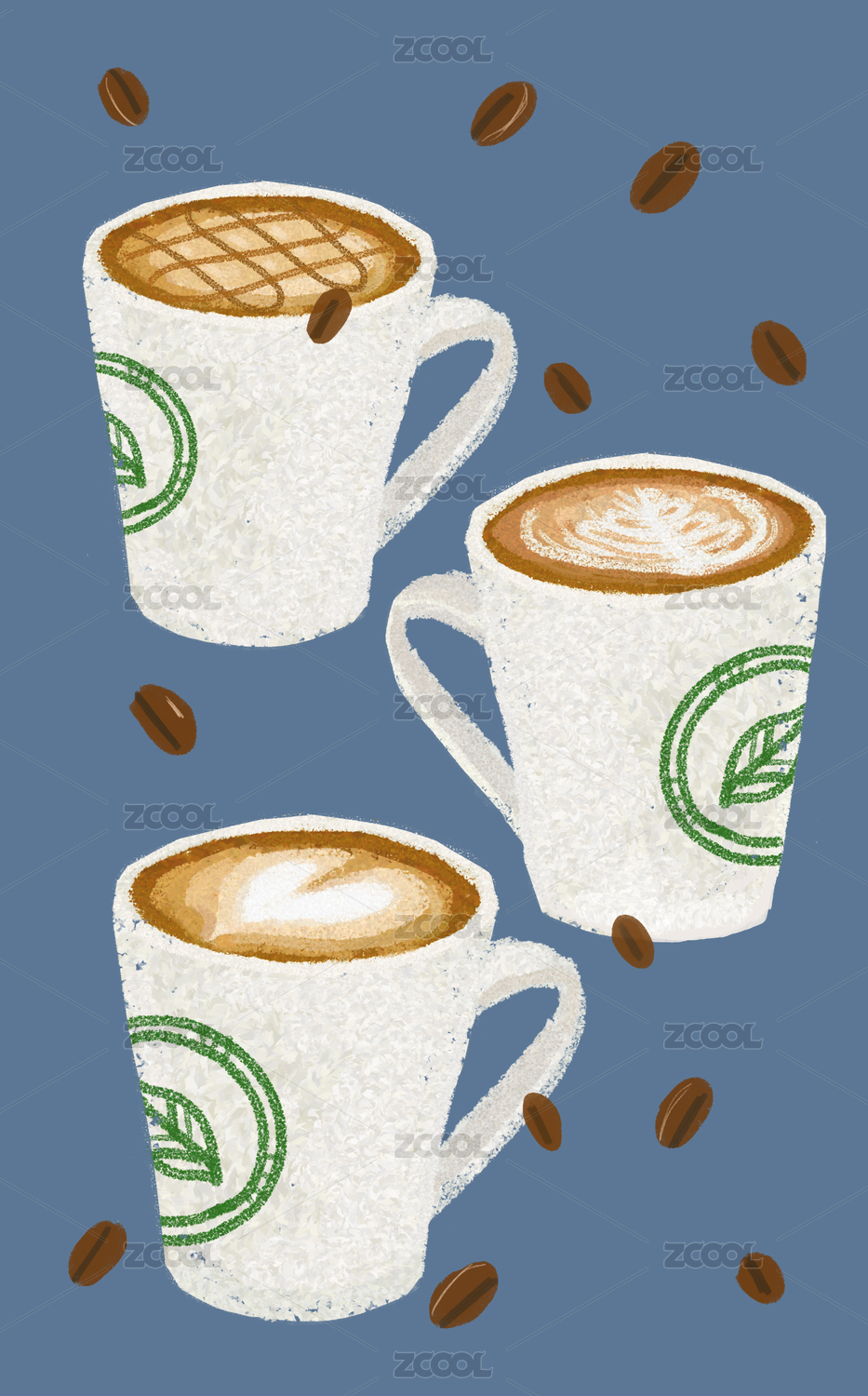 花式咖啡和散落的咖啡豆豎版海報(bào) 手繪插畫海報(bào)