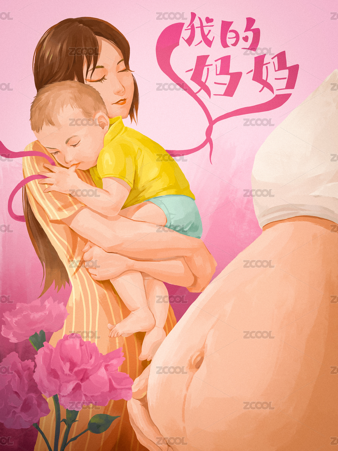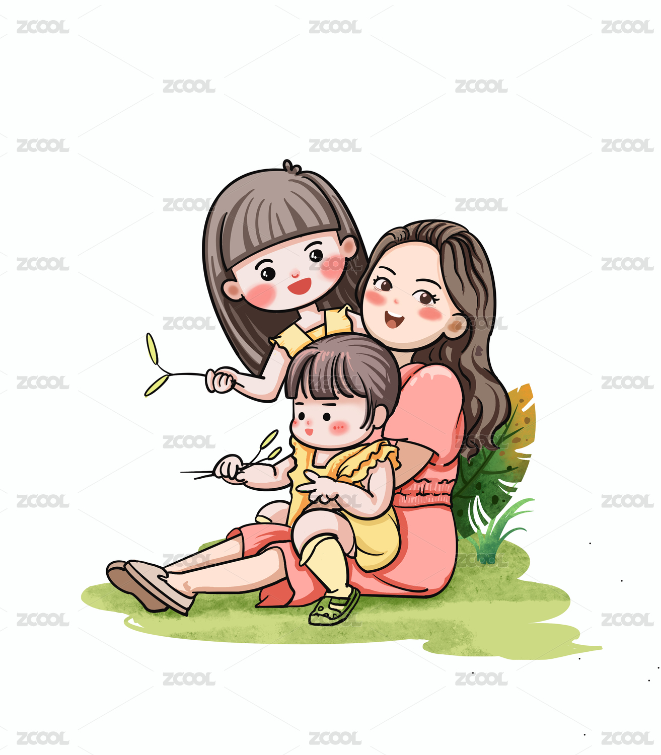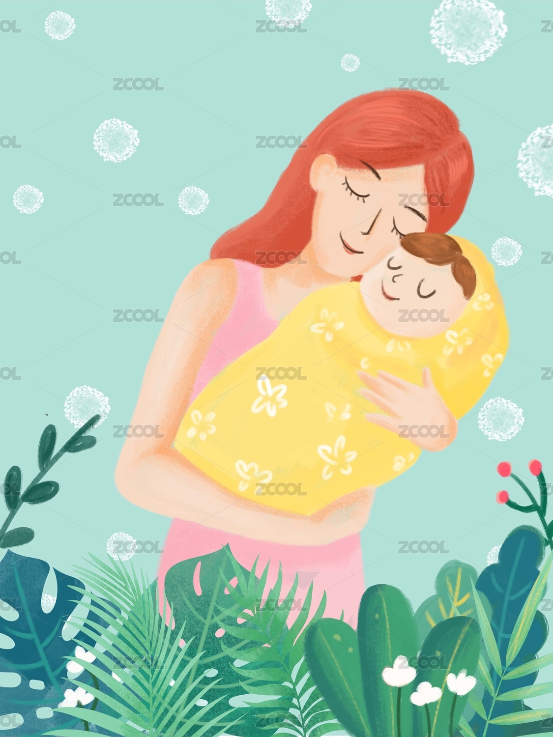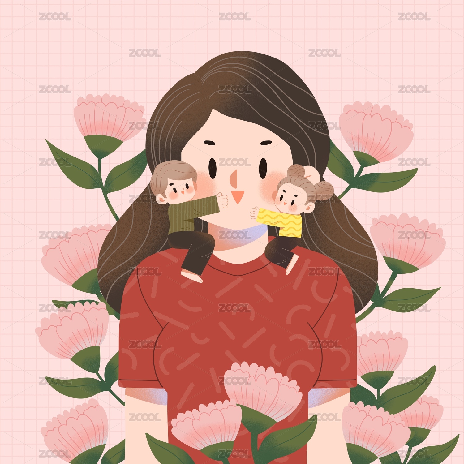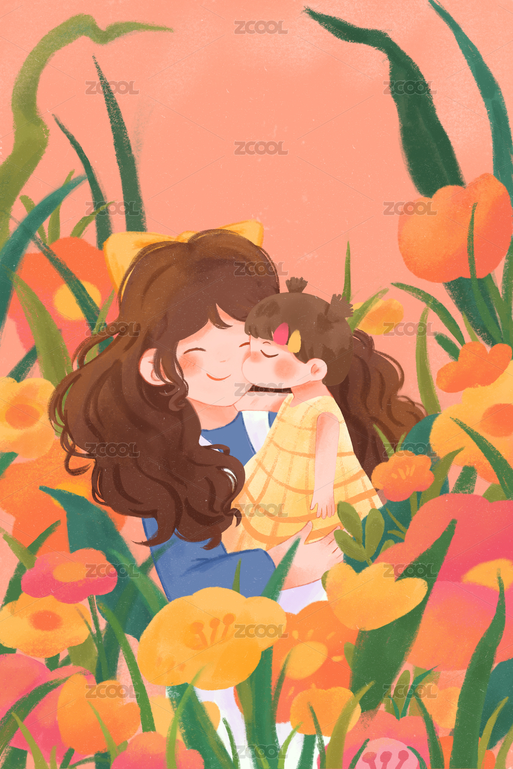 母親節(jié)插畫兩個寶寶抱著媽媽