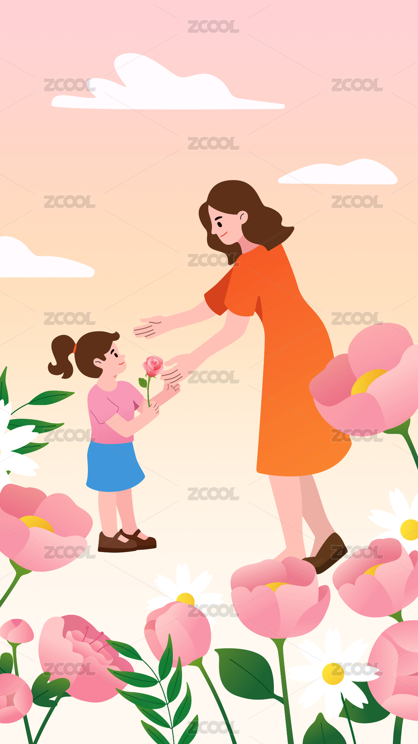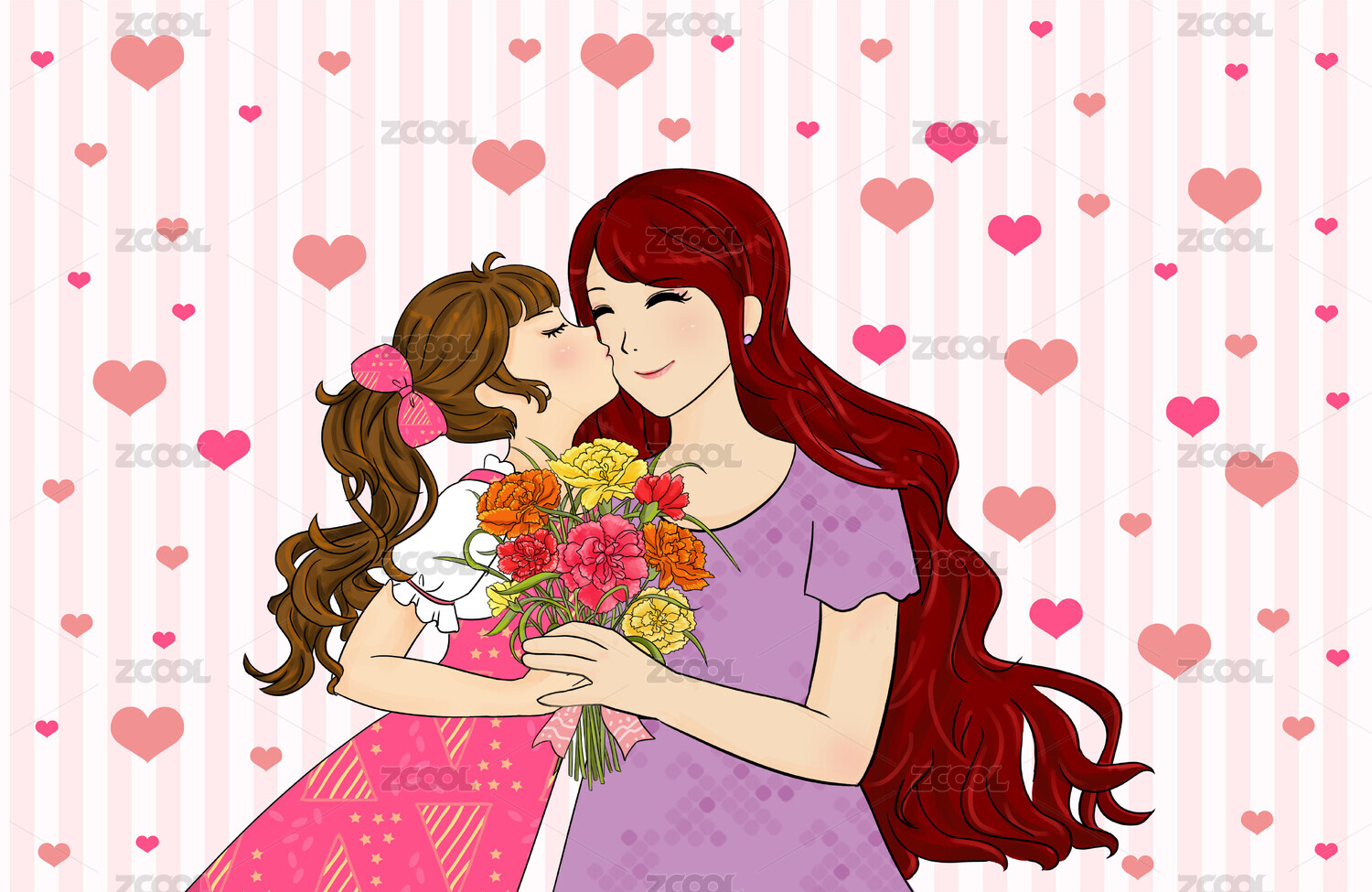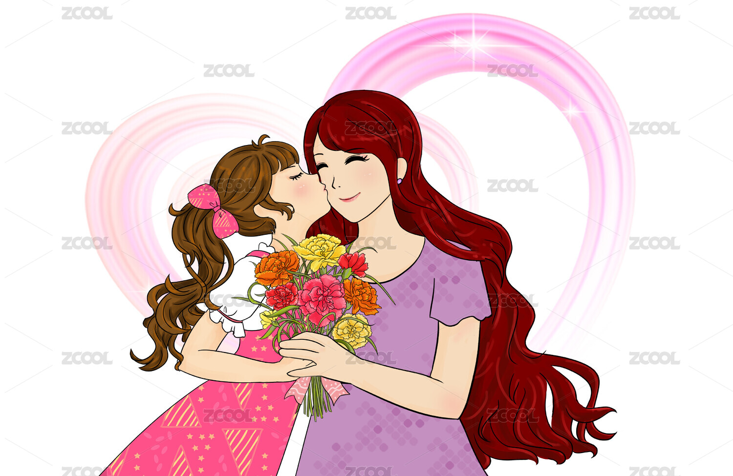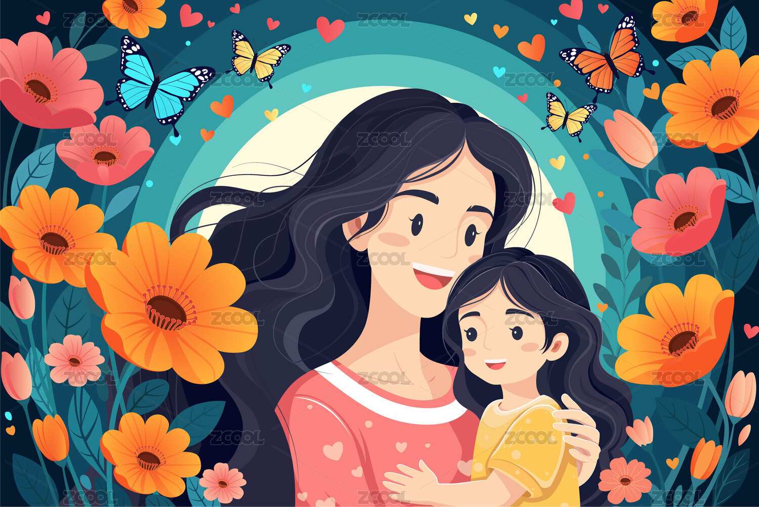 母親節(jié)慈愛的媽媽擁抱女兒Png免摳素材扁平漸變風(fēng)格