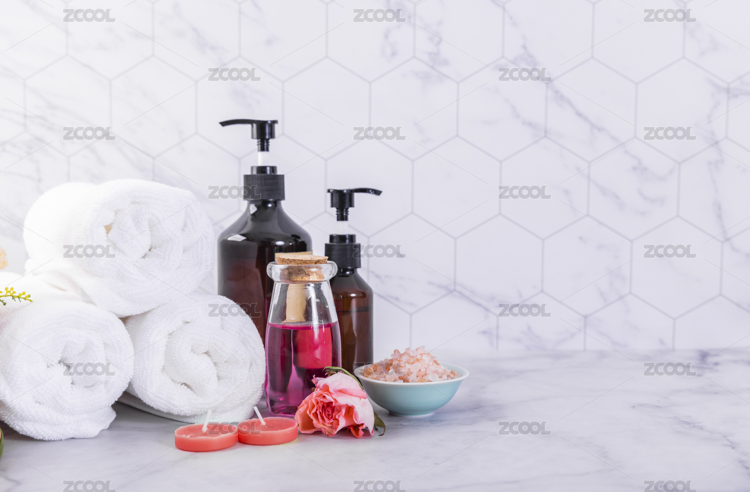 水療概念,浮花,揮發(fā)油,鹽和空氣清新劑