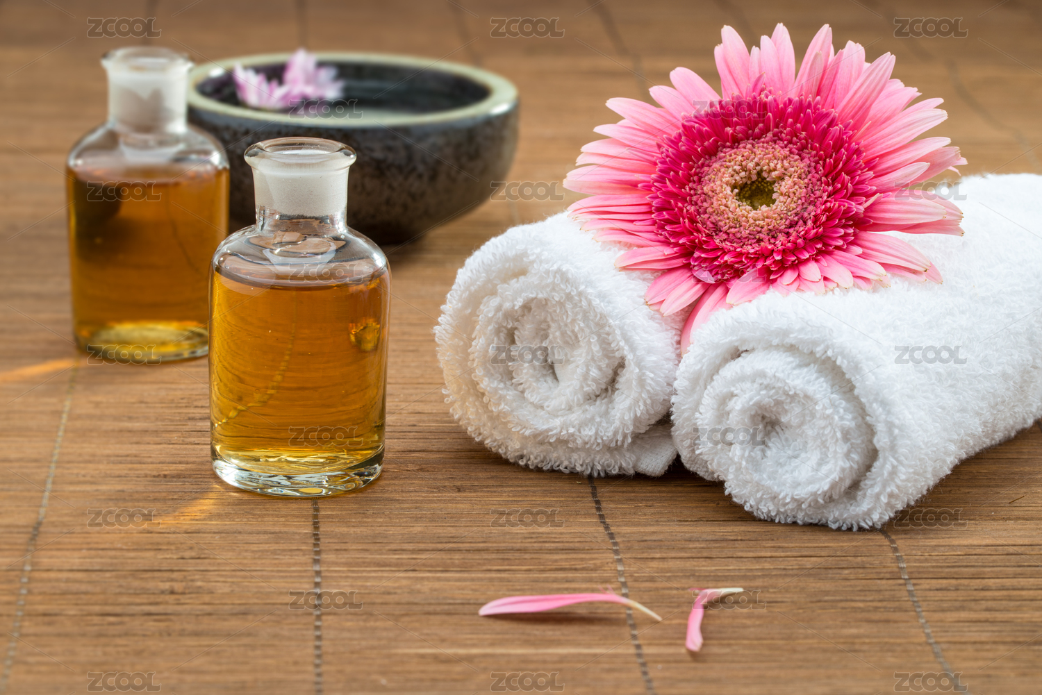 精油,毛巾上的花,花浮于水面脫穎而出健康水療