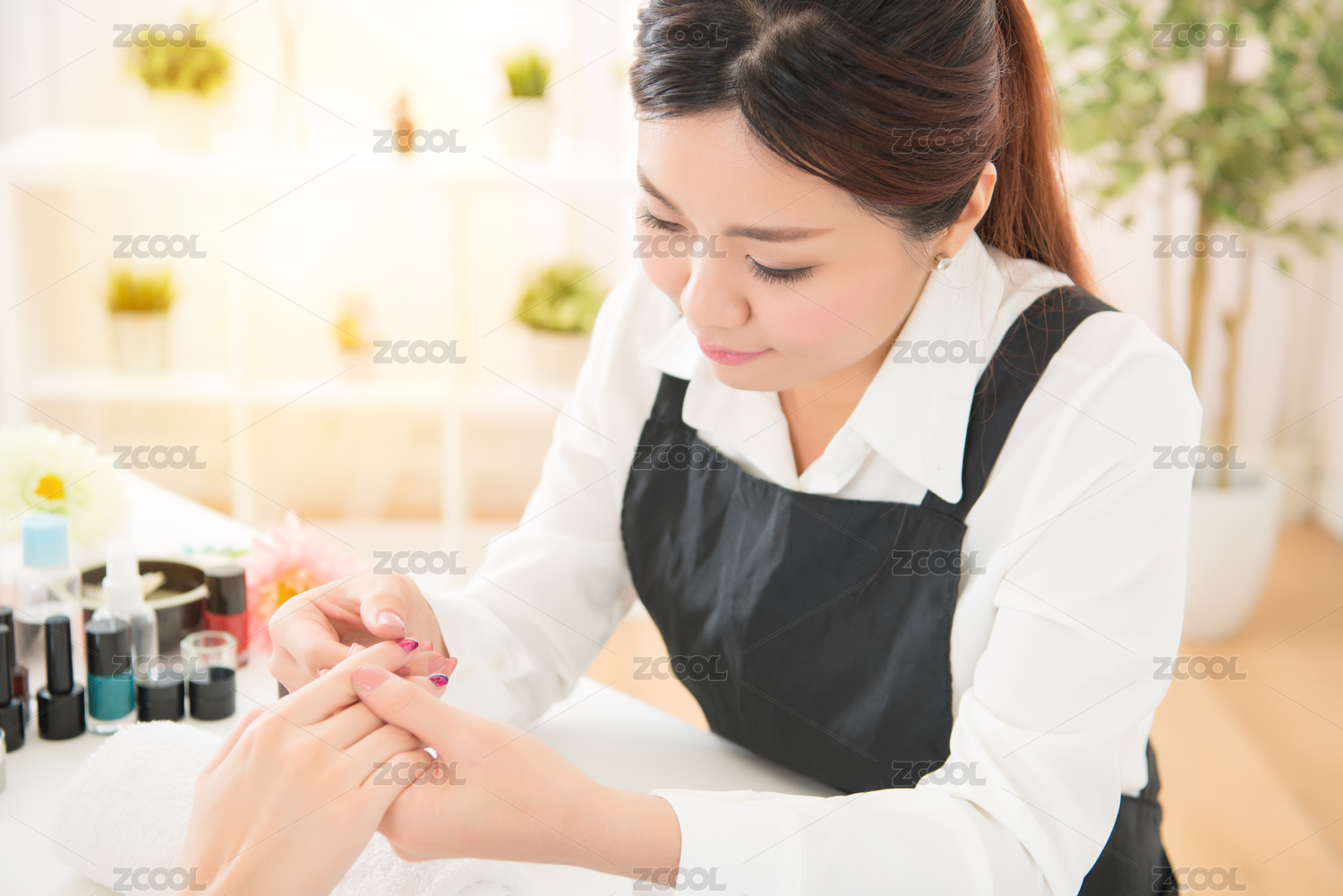 漂亮的亞洲女人檢查驗(yàn)證檢查客戶(hù)端手部按摩和身體護(hù)理美甲沙龍的,水療。美麗和時(shí)尚理念。