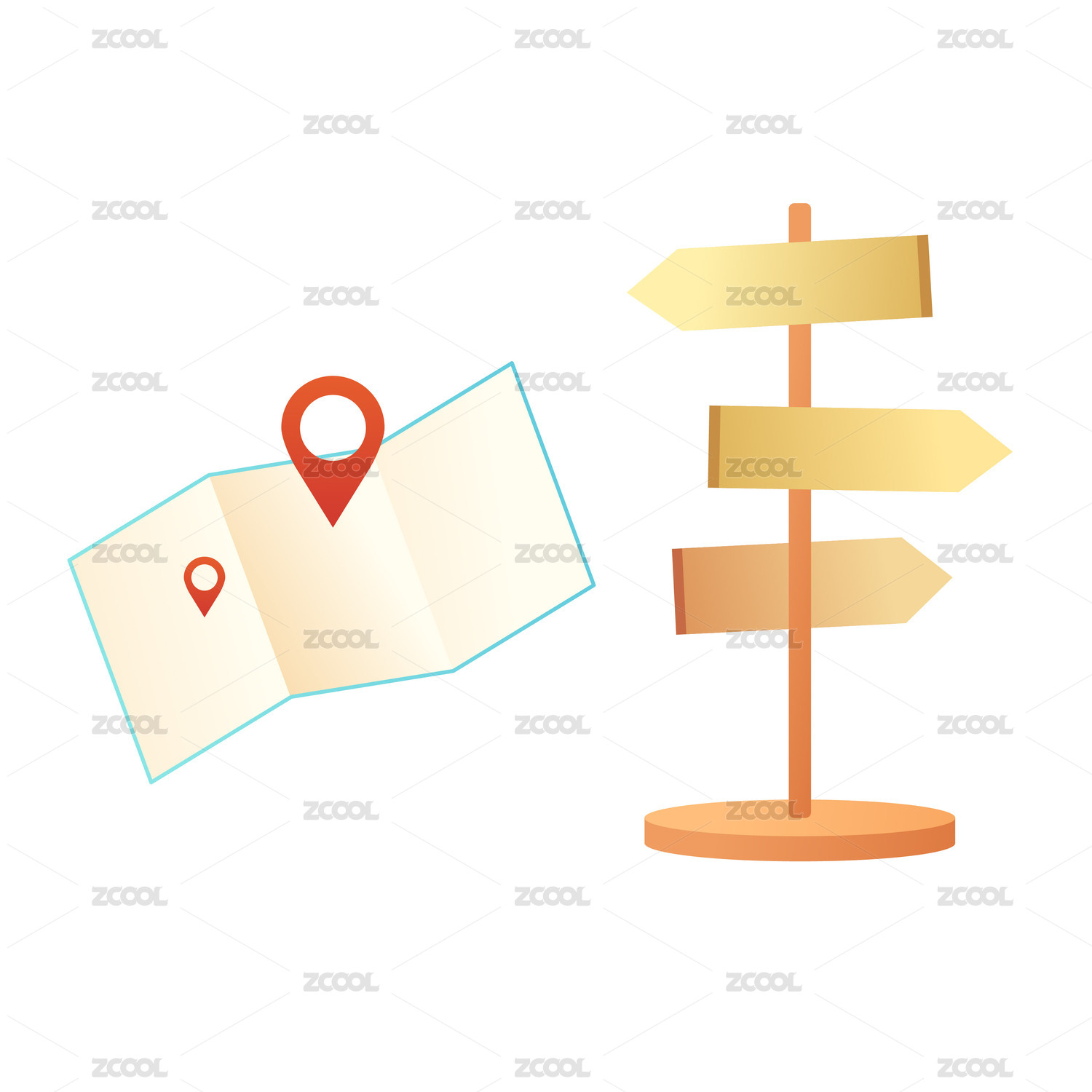 矢量插畫路標(biāo)導(dǎo)向牌地圖