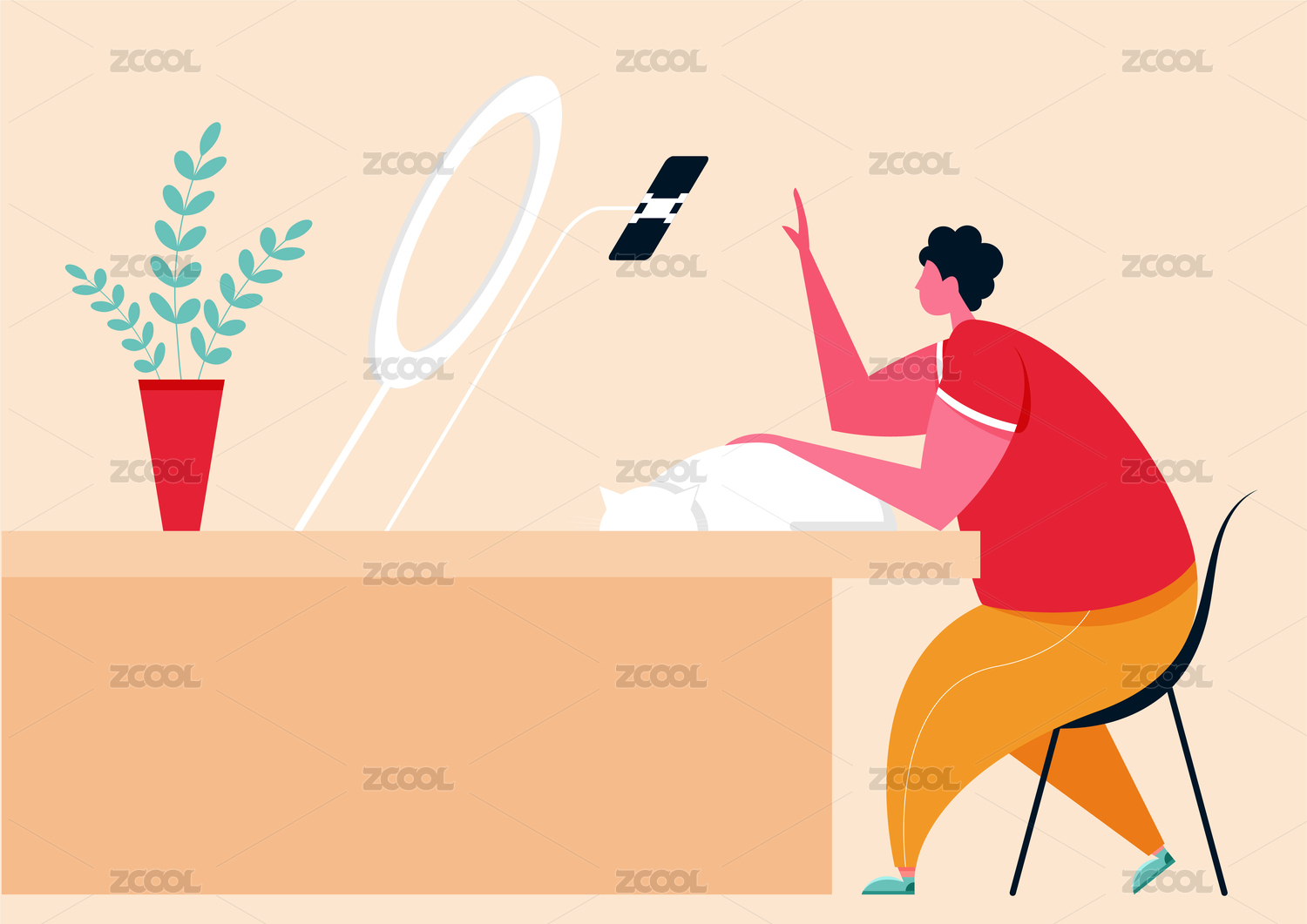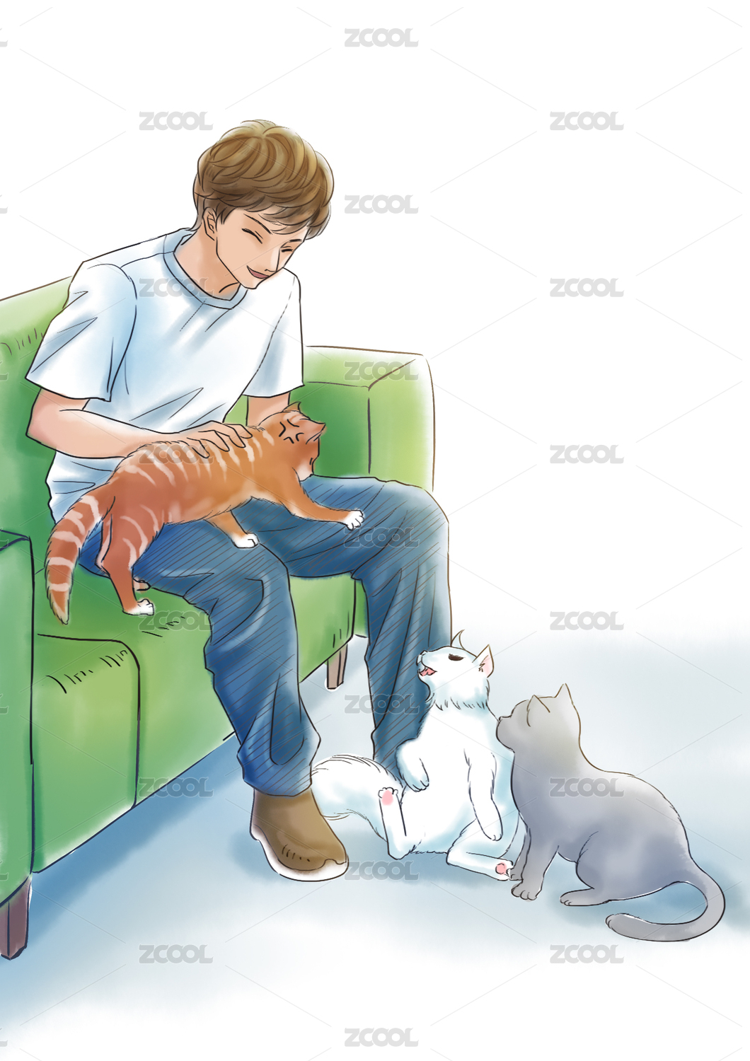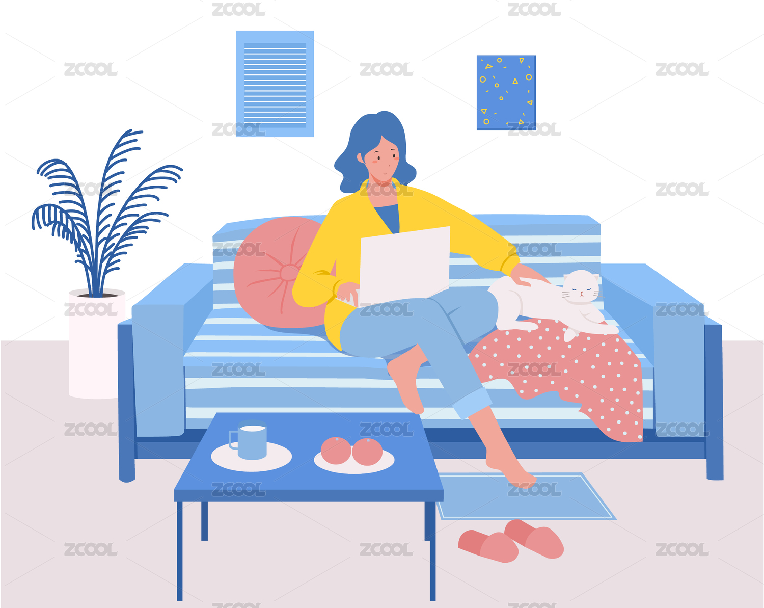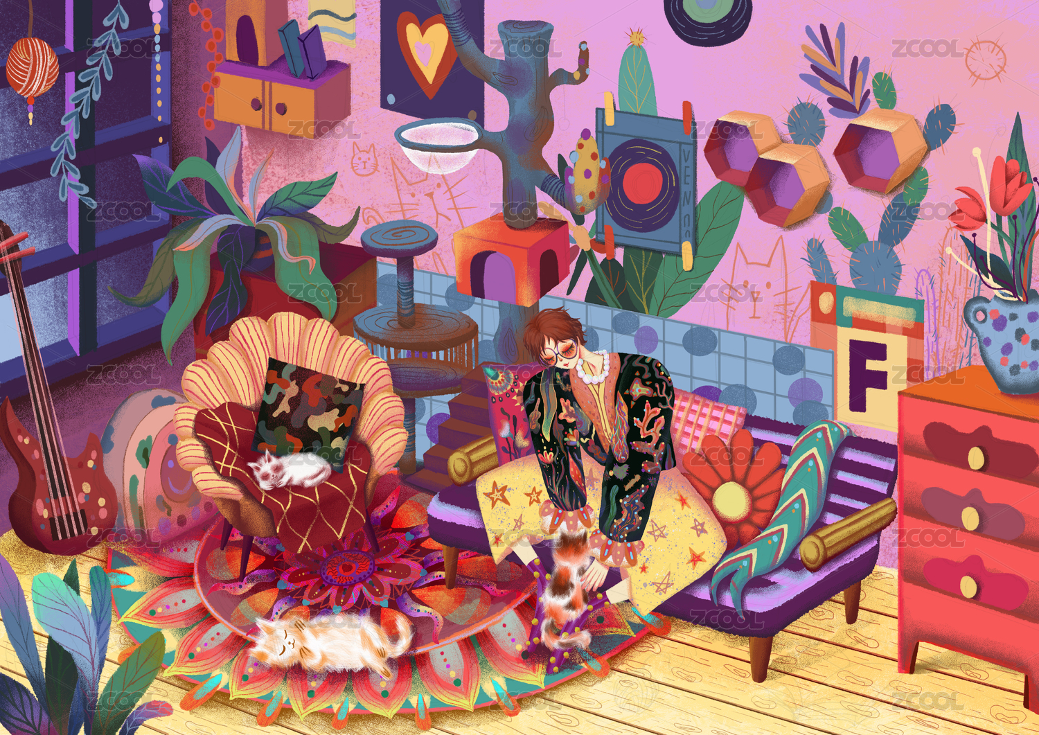 養(yǎng)貓人在家里擼貓放松的幸福時(shí)刻,噪點(diǎn)插畫(huà)
