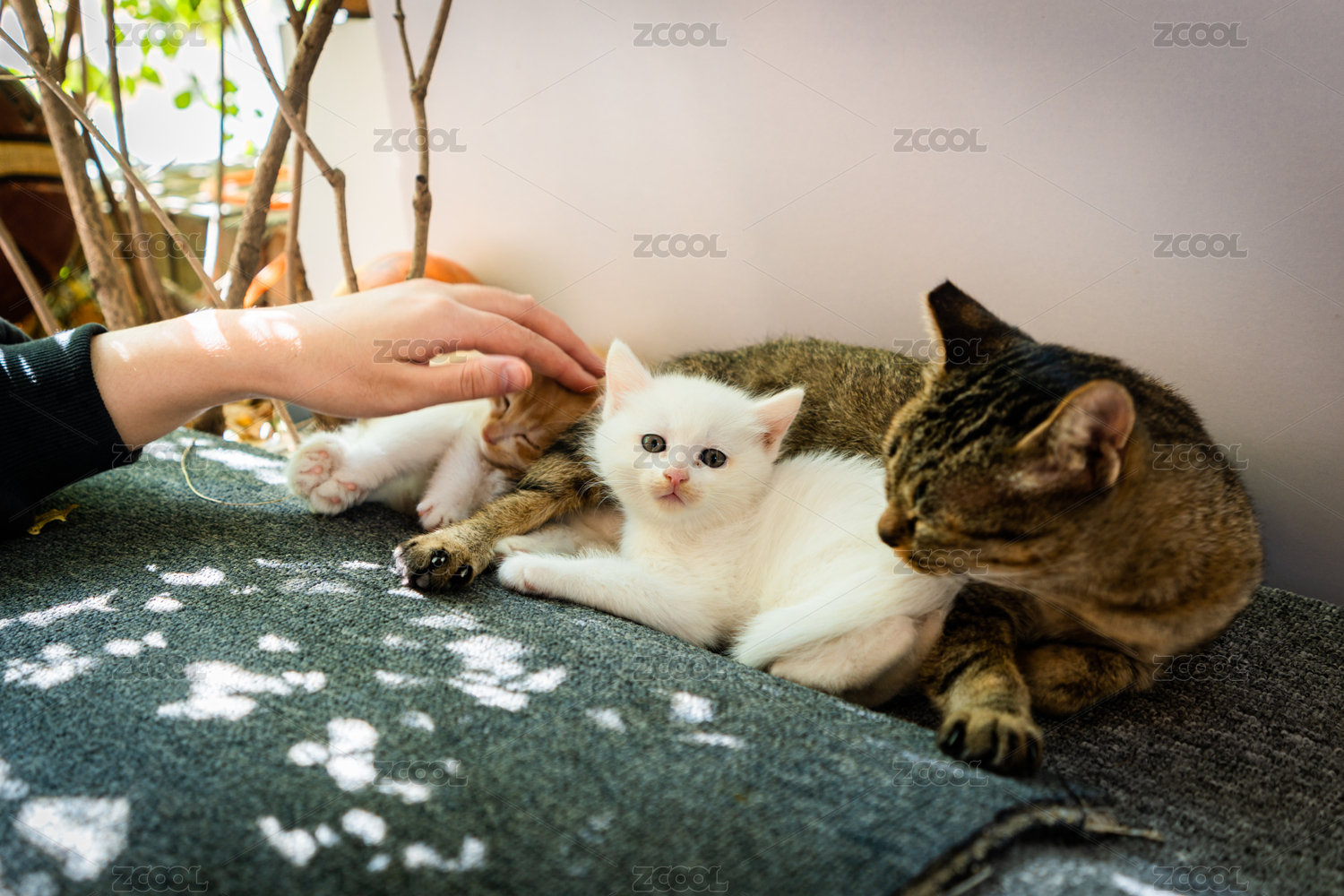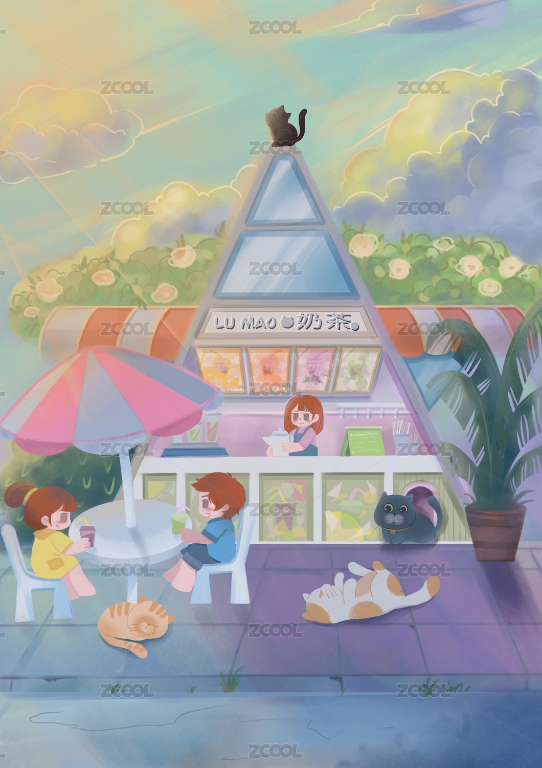 兩個(gè)人在奶茶店喝奶茶擼貓