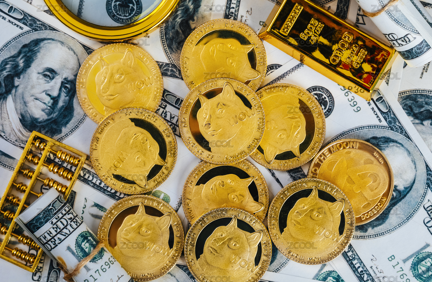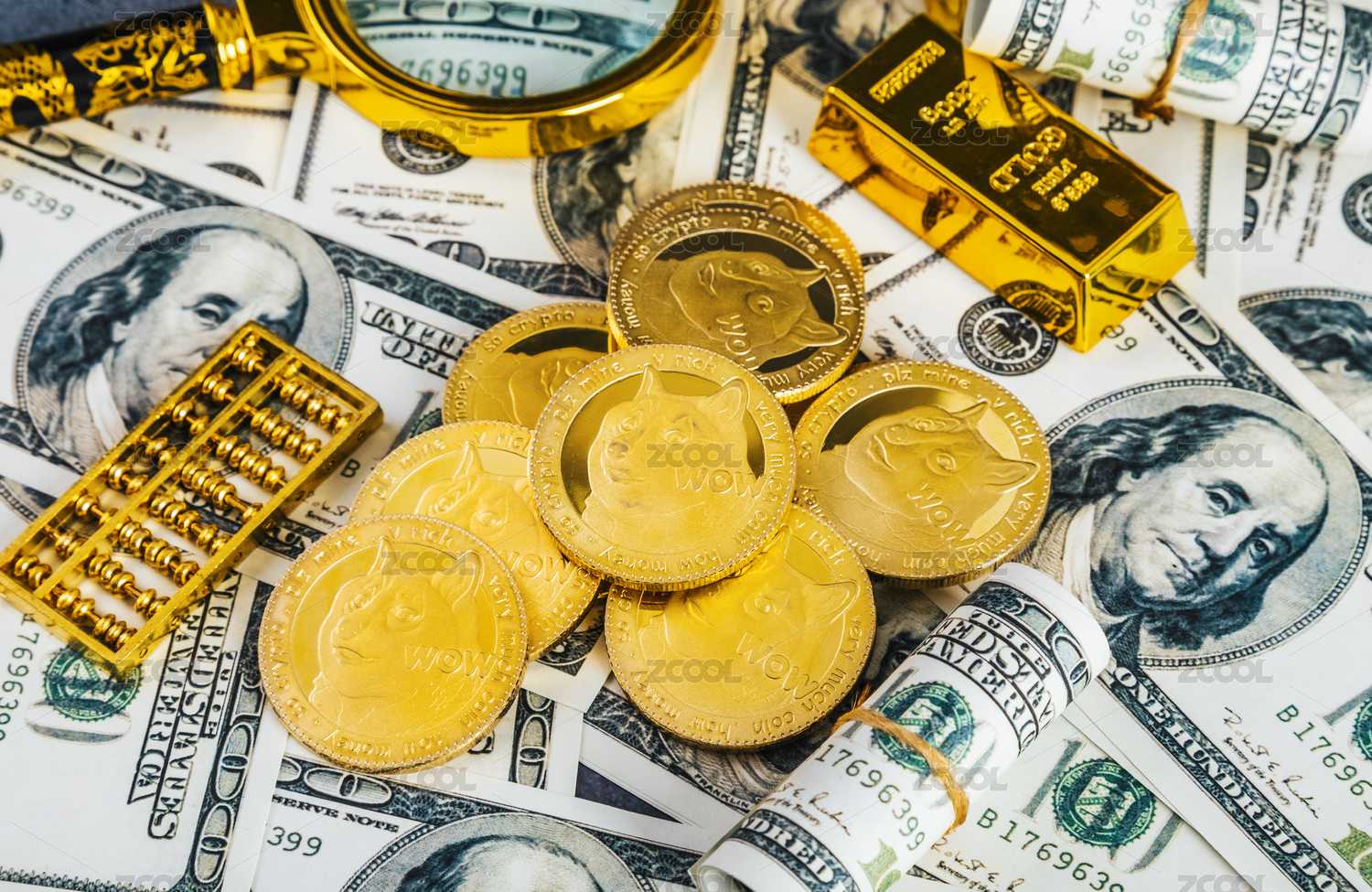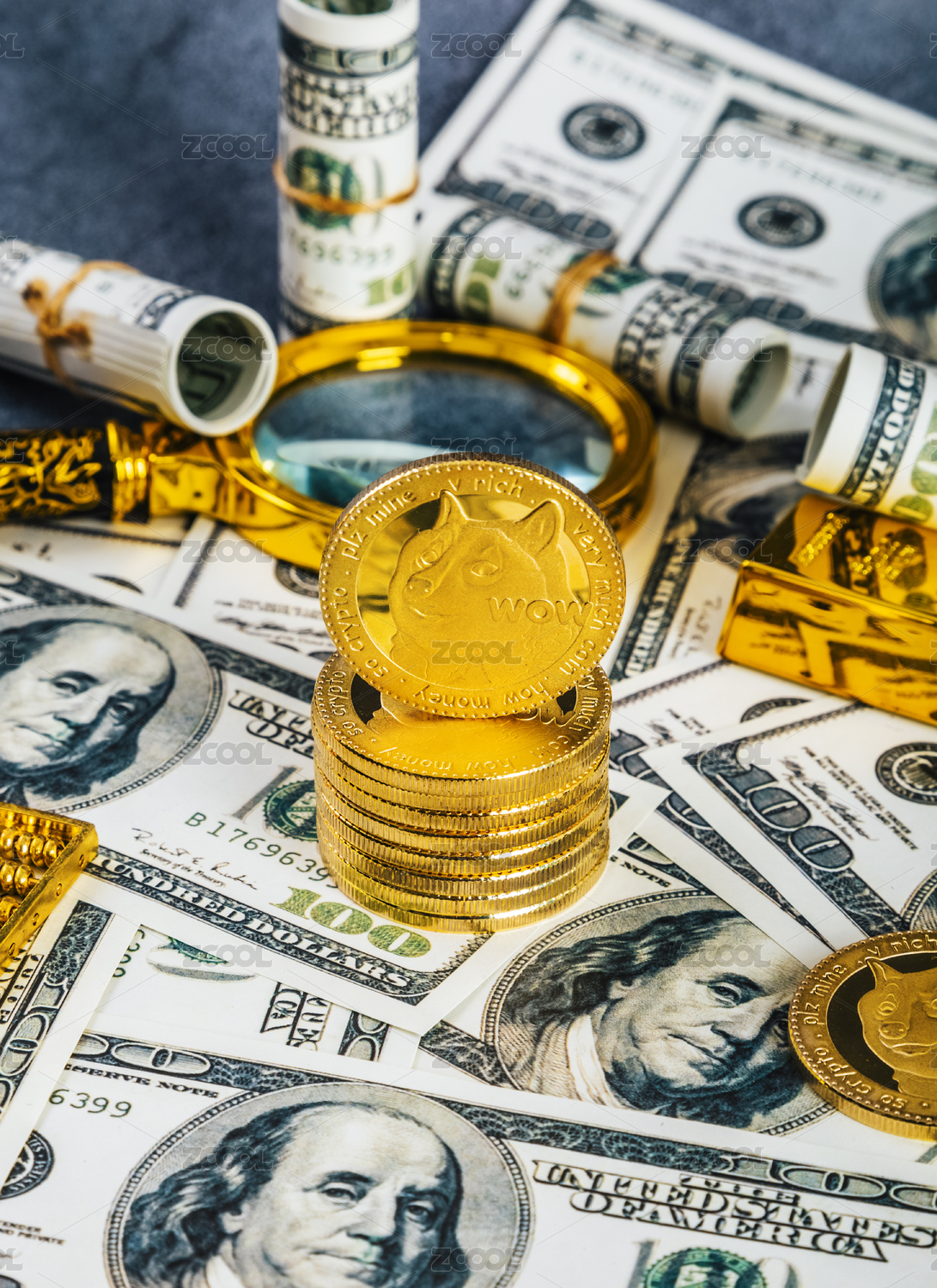 數(shù)字貨幣狗狗幣與美元堆疊