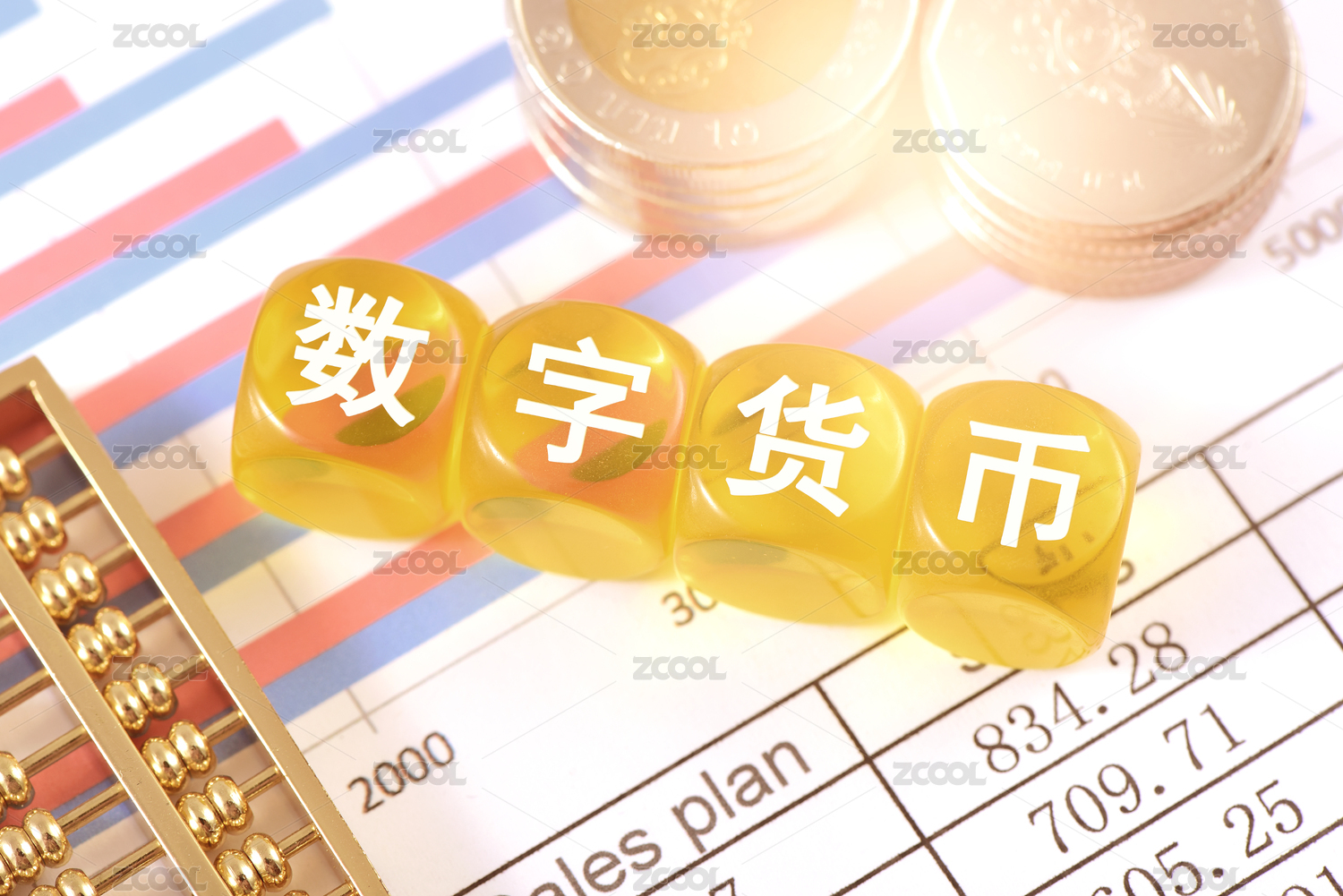 圖表上的文字積木數(shù)字貨幣