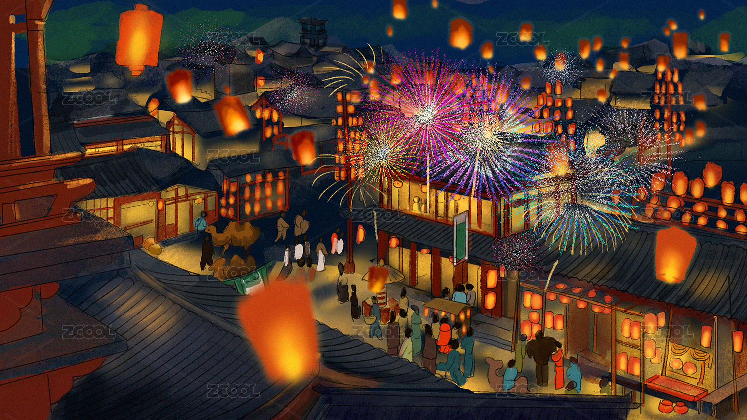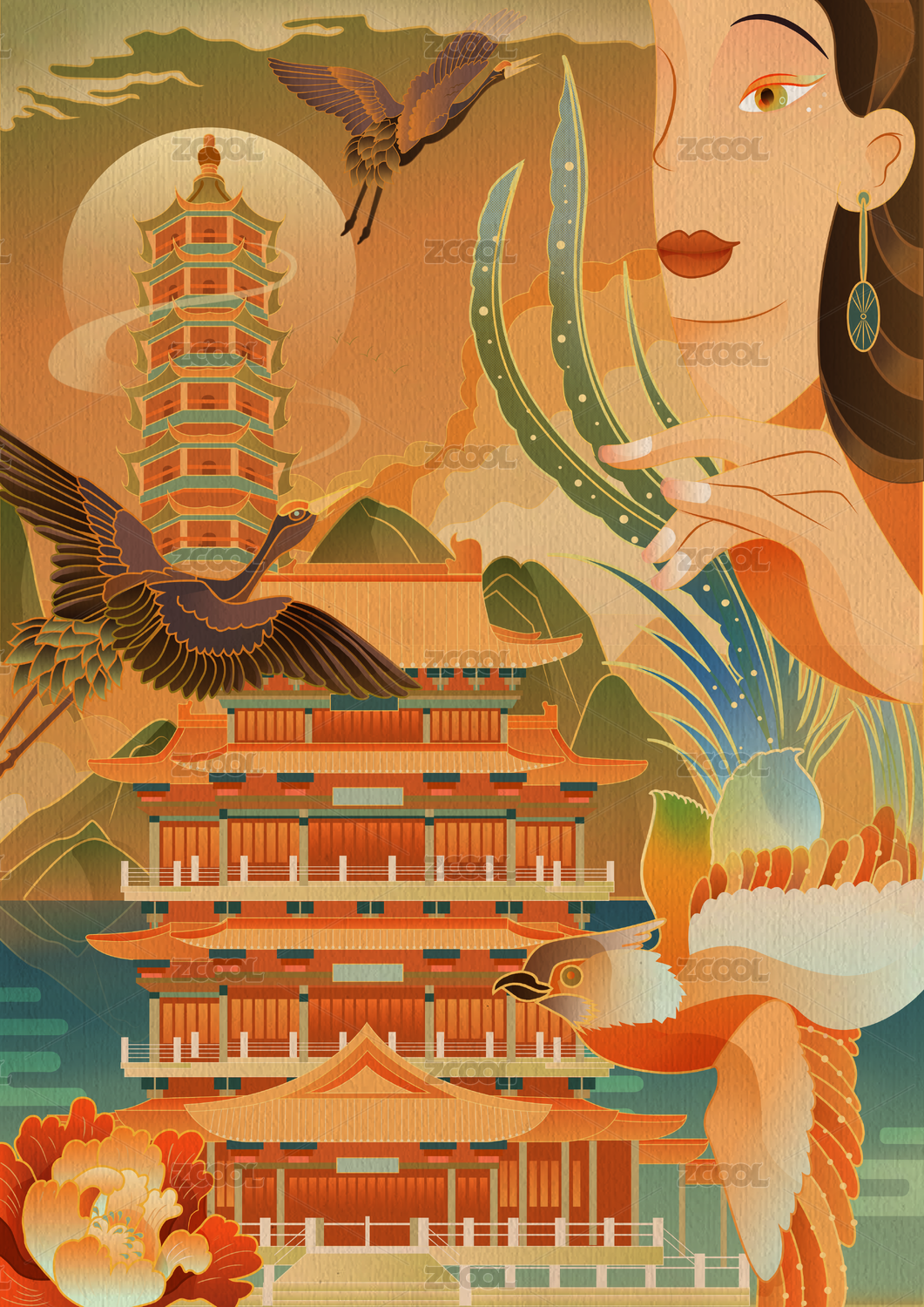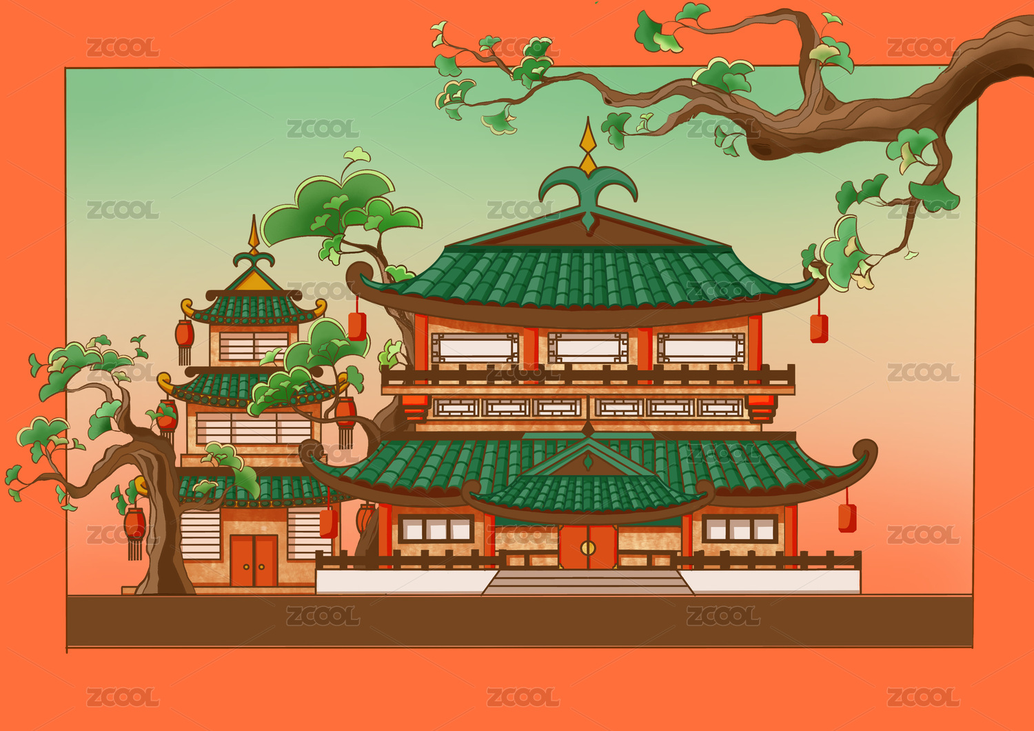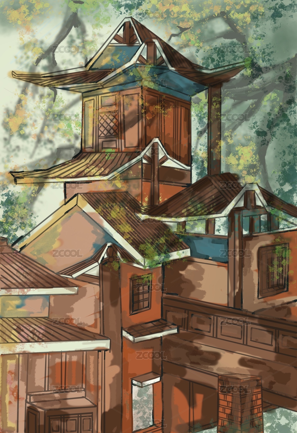 國潮手繪古風(fēng)建筑