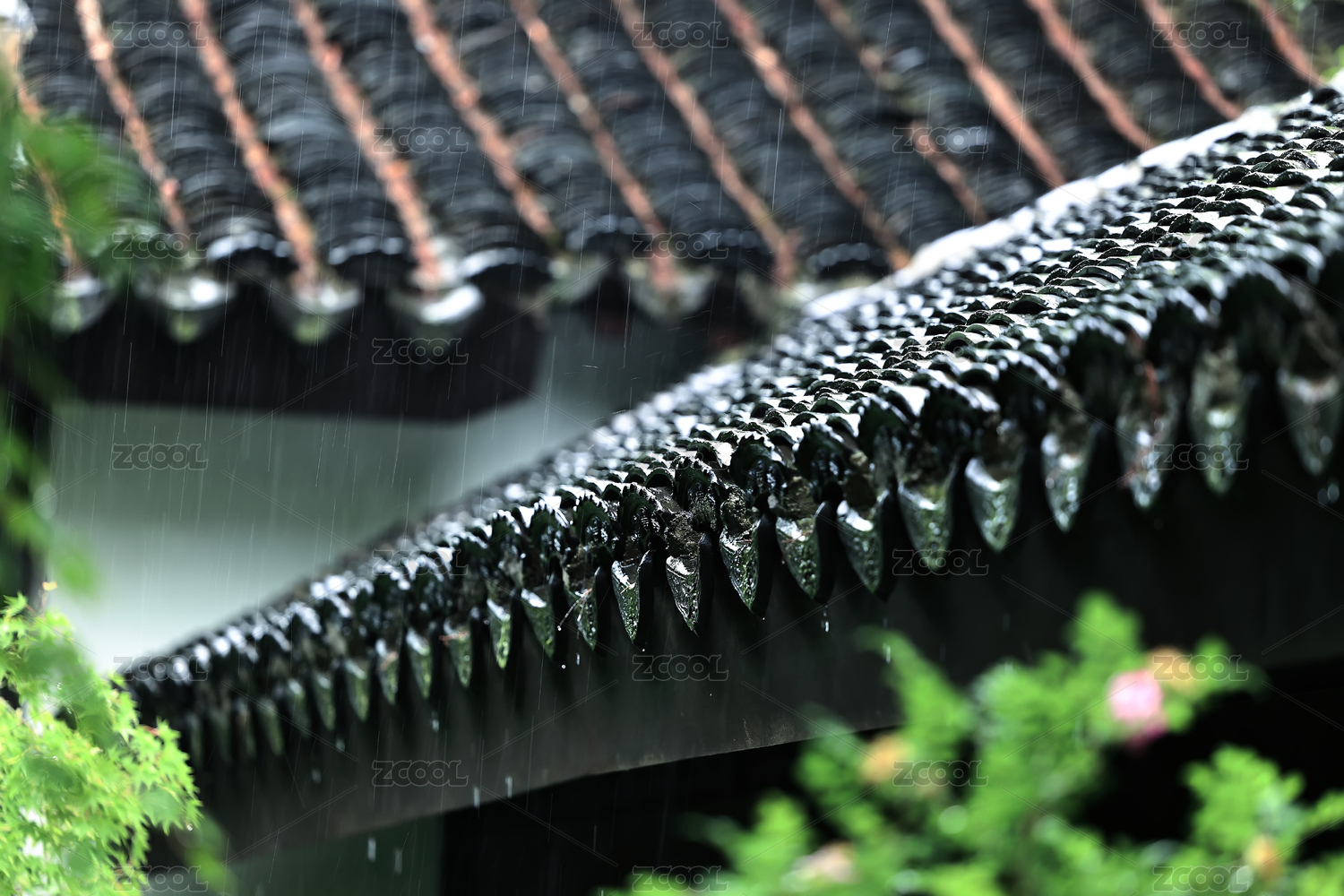 江南古風(fēng)建筑上的雨滴