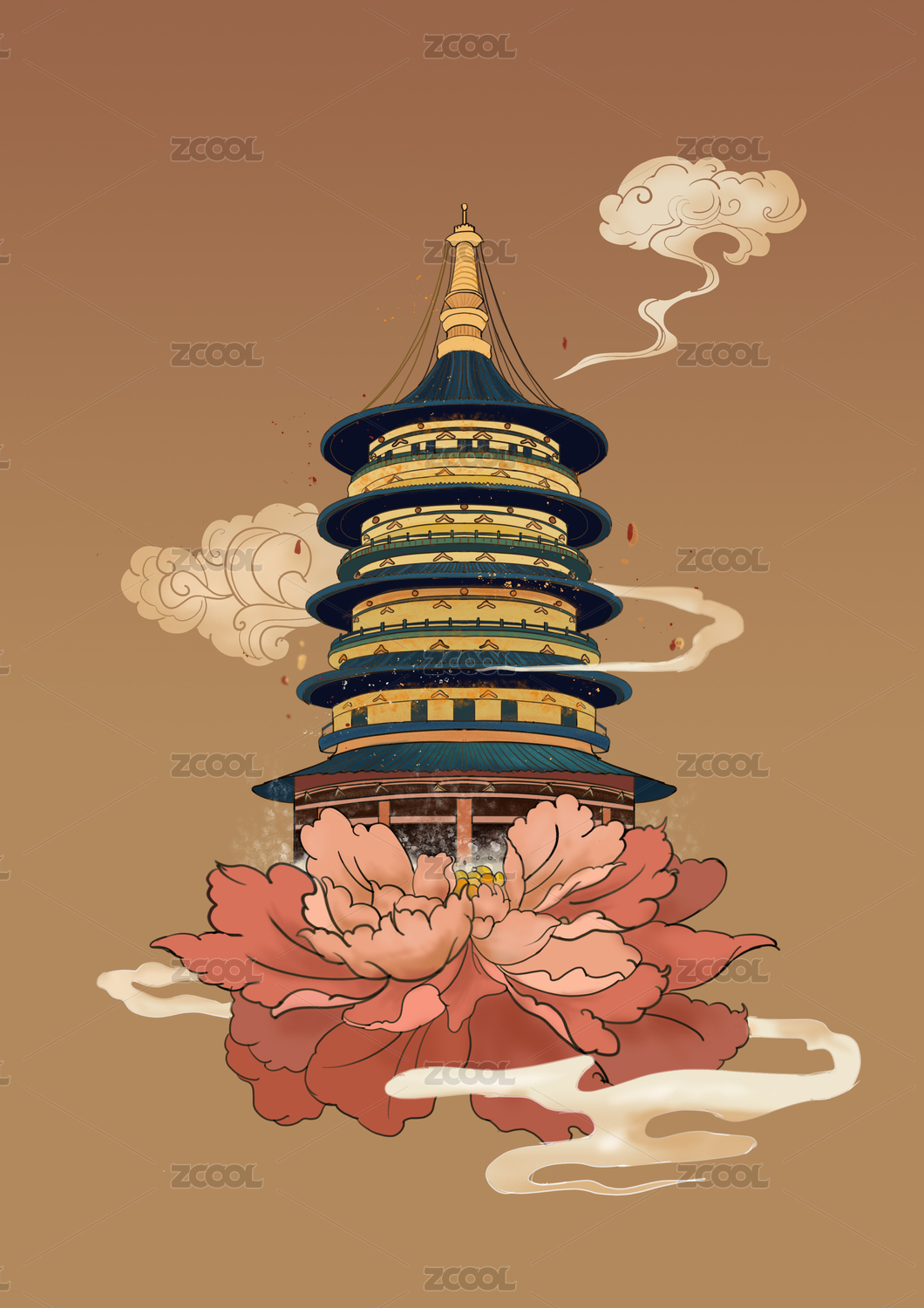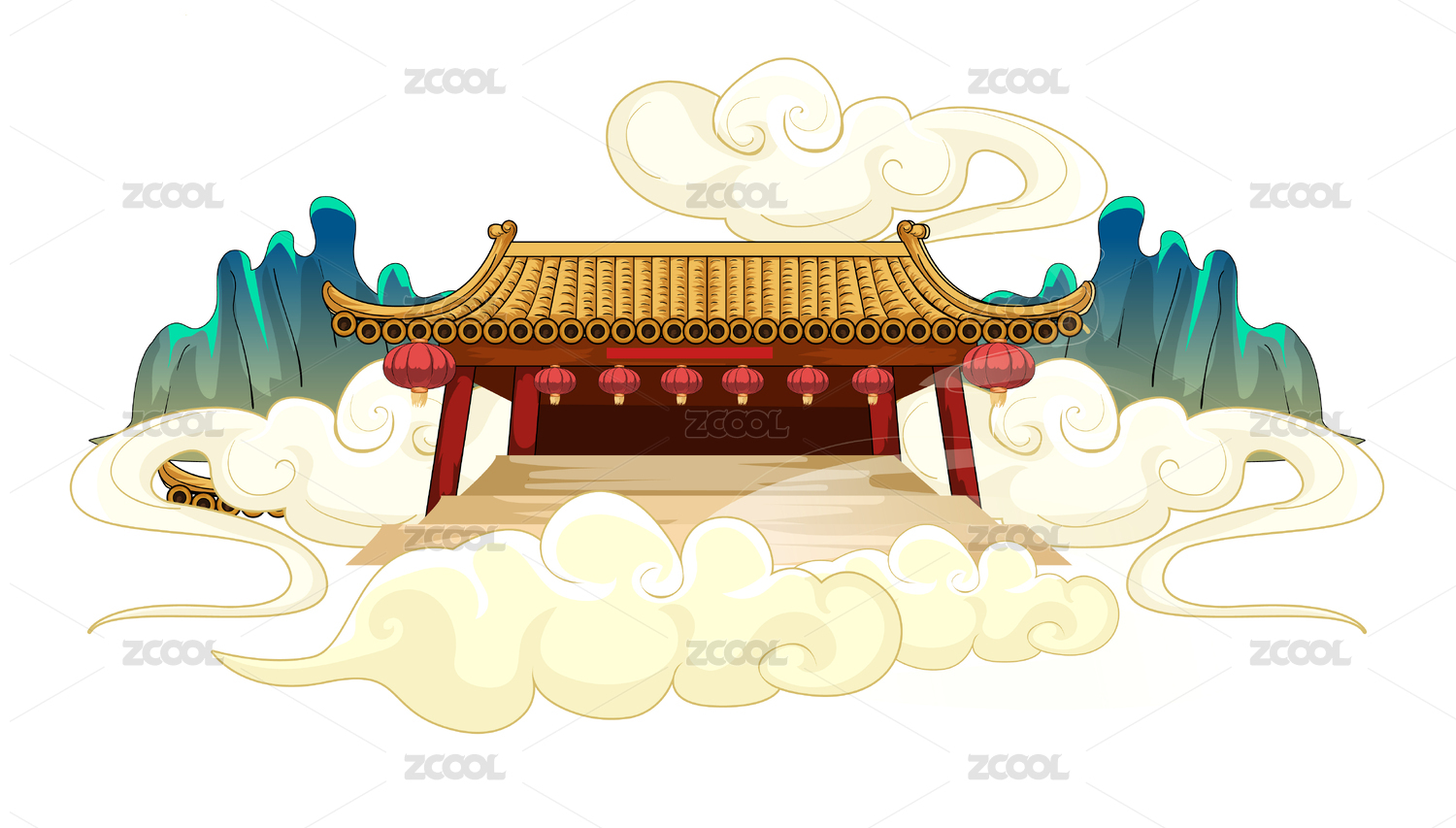 古風(fēng)建筑中國風(fēng)祥云矢量插畫