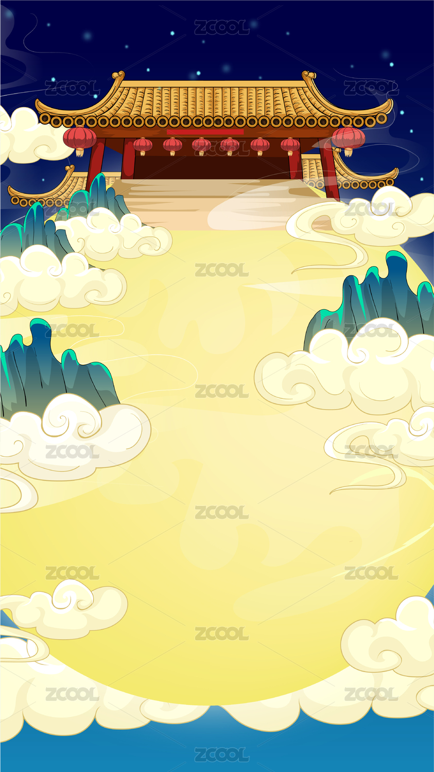 中秋月亮古風(fēng)建筑宮殿國潮風(fēng)矢量插畫