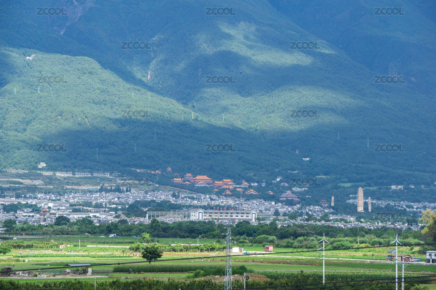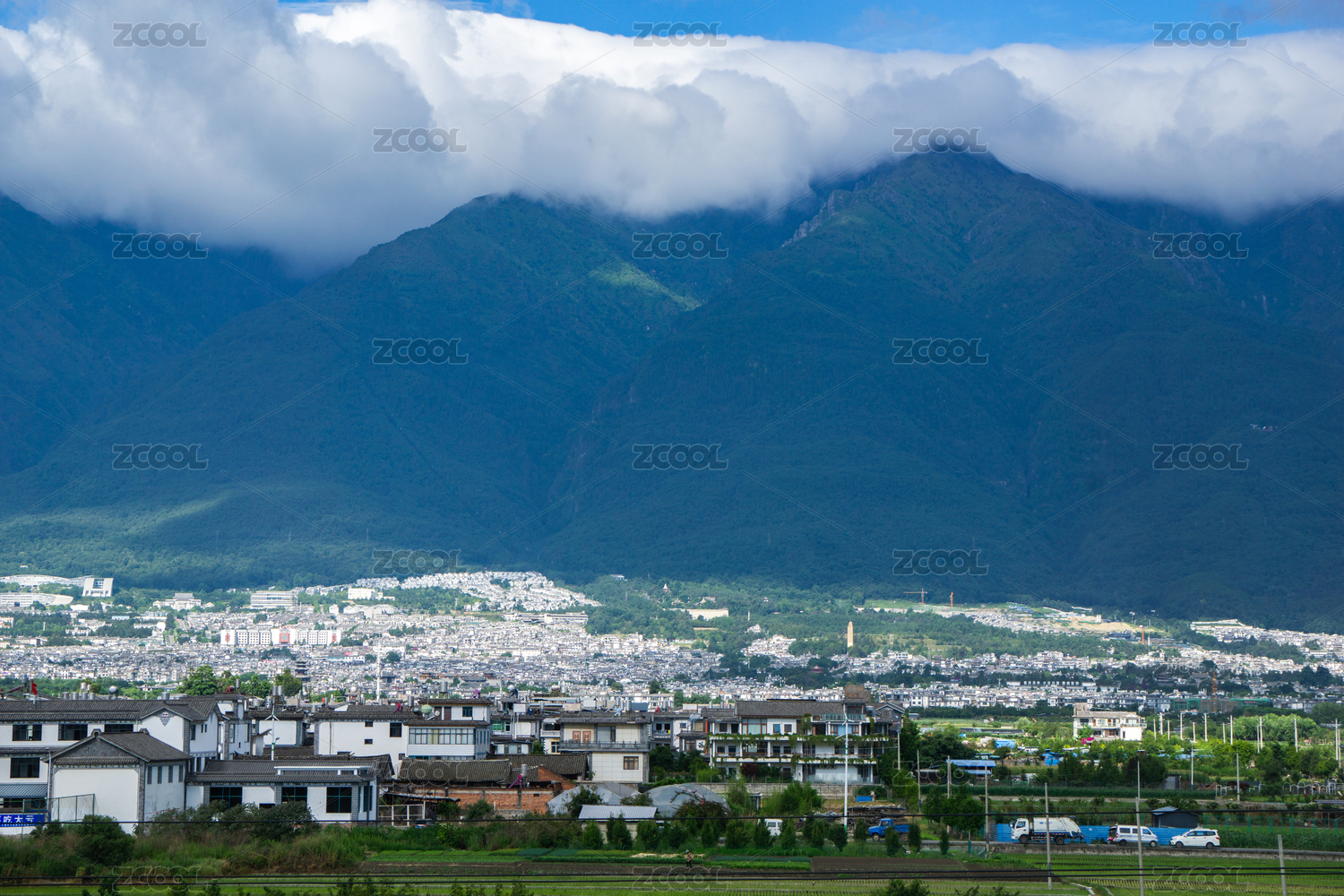航拍大理古城天憙園皇家園林景區(qū)與蒼山同框