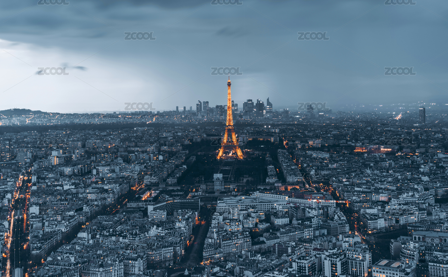 法國(guó)巴黎埃菲爾鐵塔城市夜景風(fēng)光