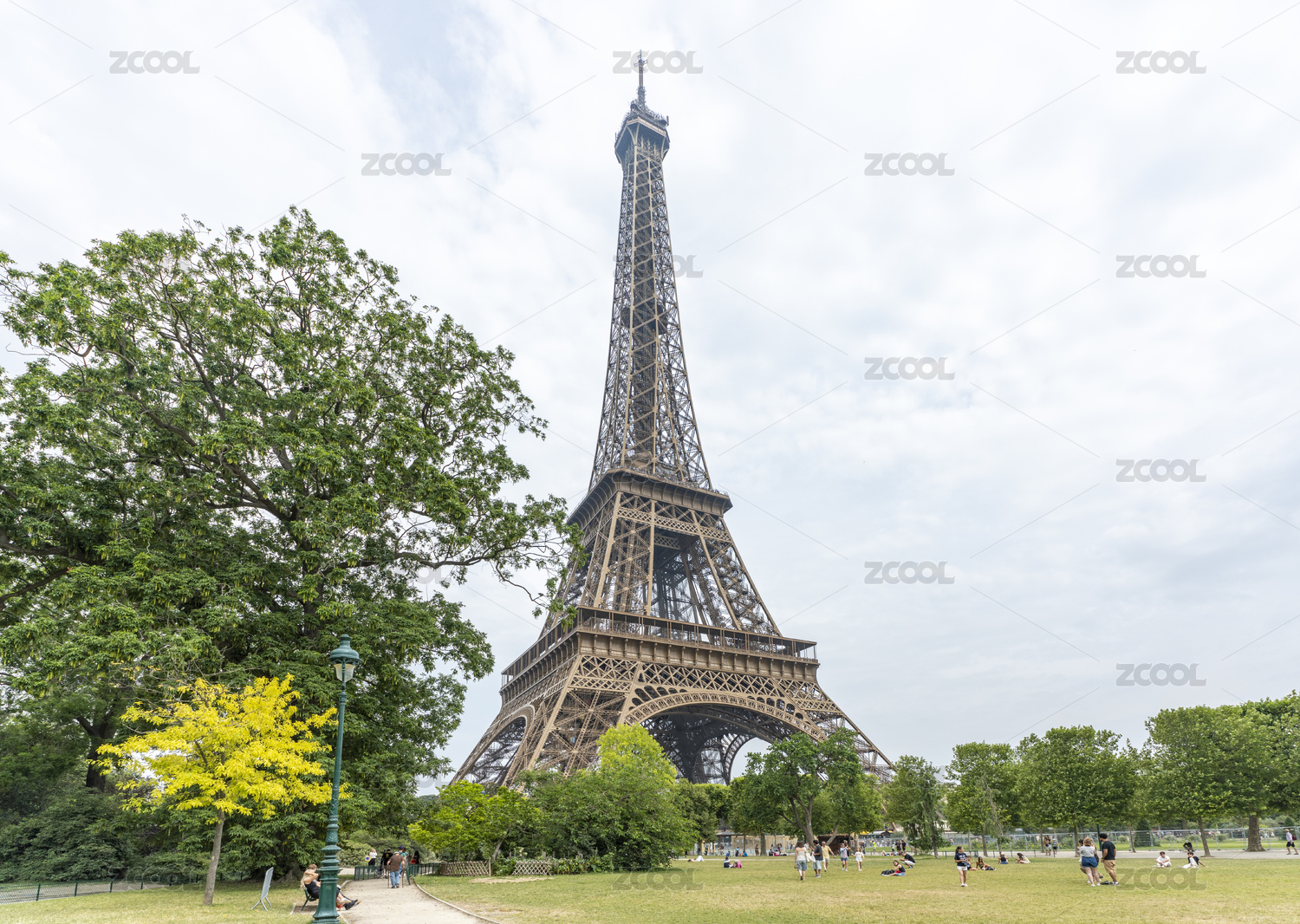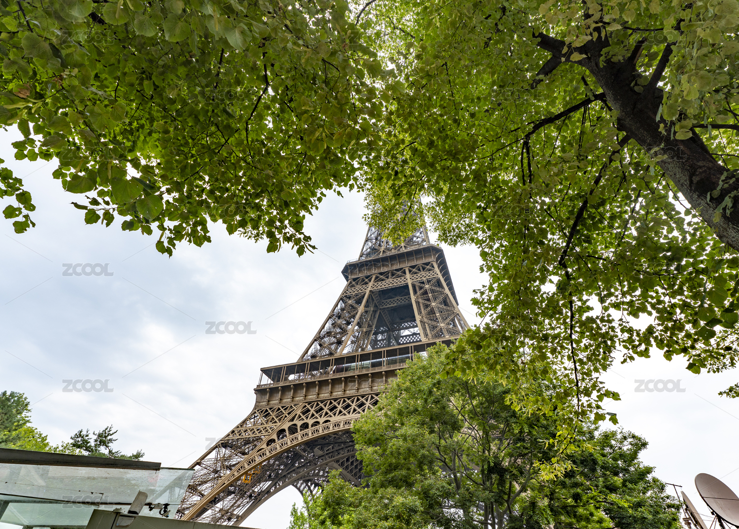 歐洲法國(guó)巴黎埃菲爾鐵塔遠(yuǎn)景前景植物