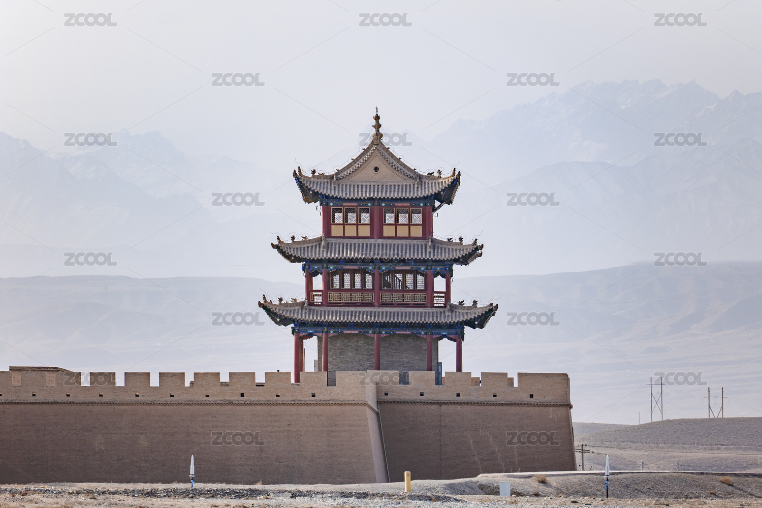 甘肅省嘉峪關(guān)市嘉峪關(guān)門(mén)城樓與遠(yuǎn)方的雪山