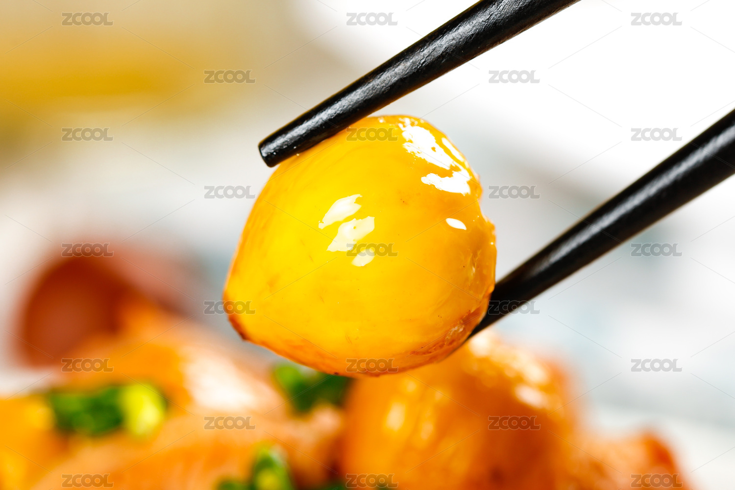 筷子上夾著一個錐栗果肉