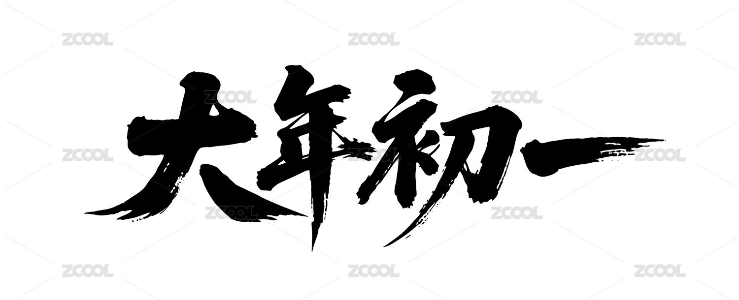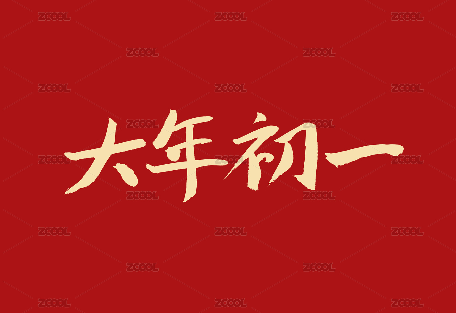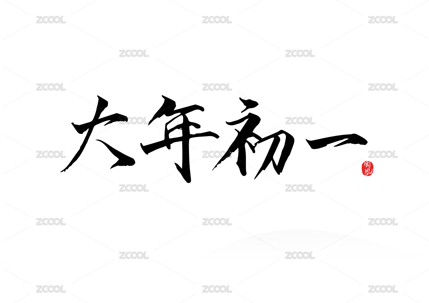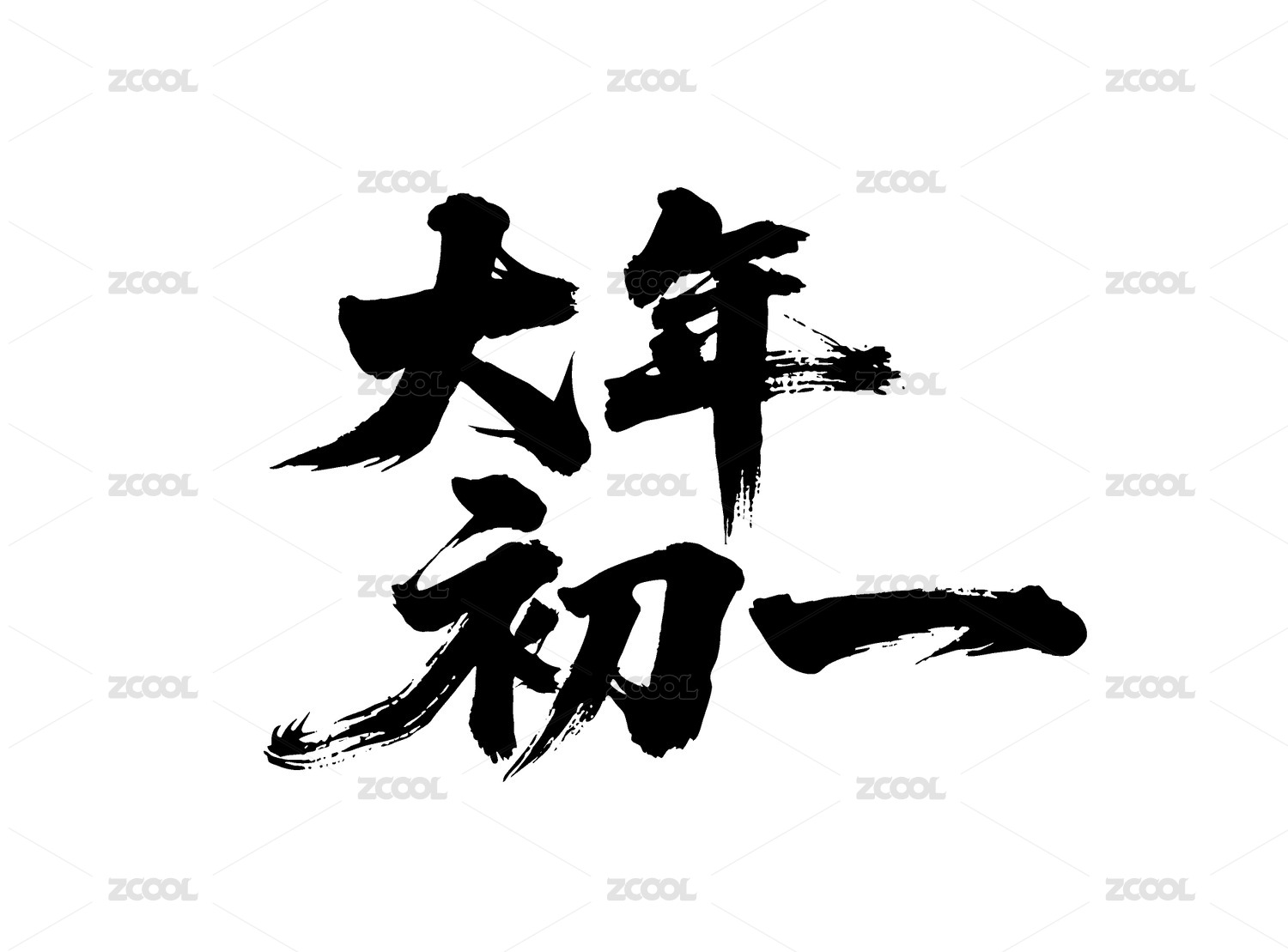 大年初一矢量書(shū)法手寫(xiě)毛筆字