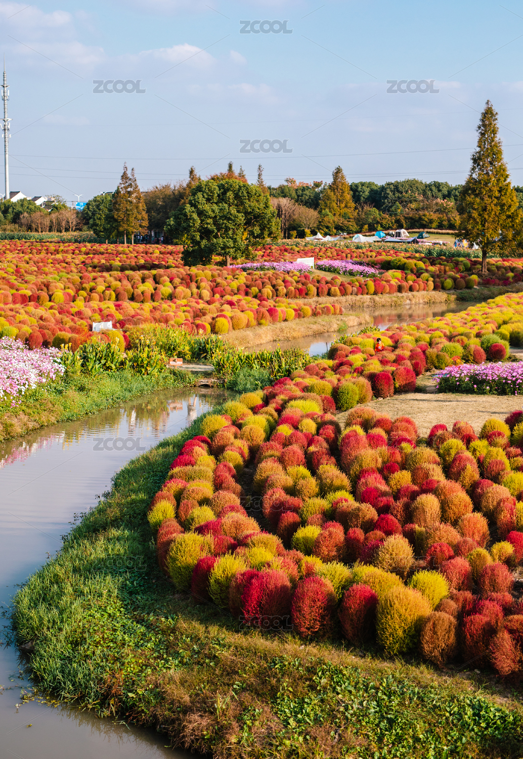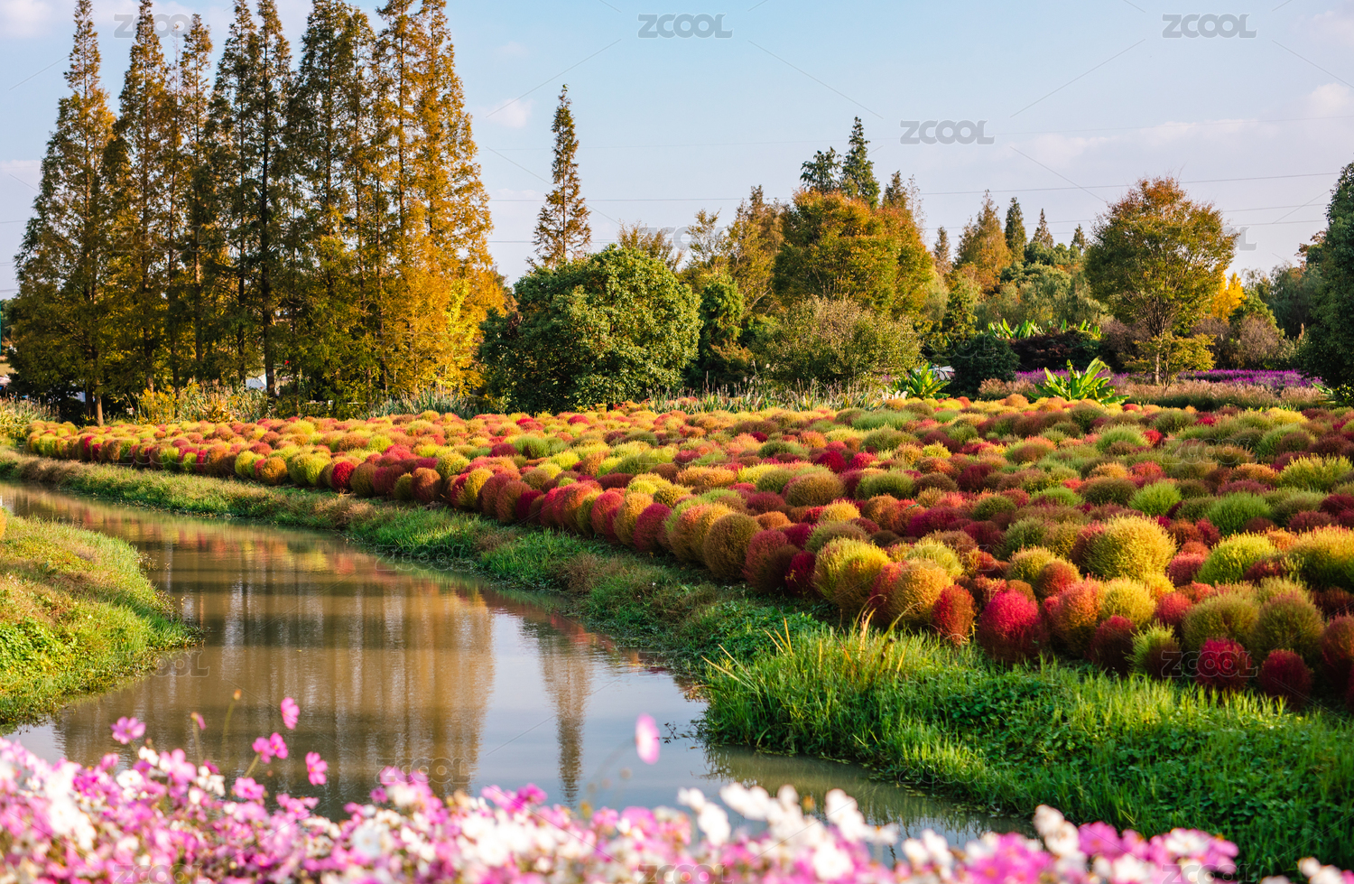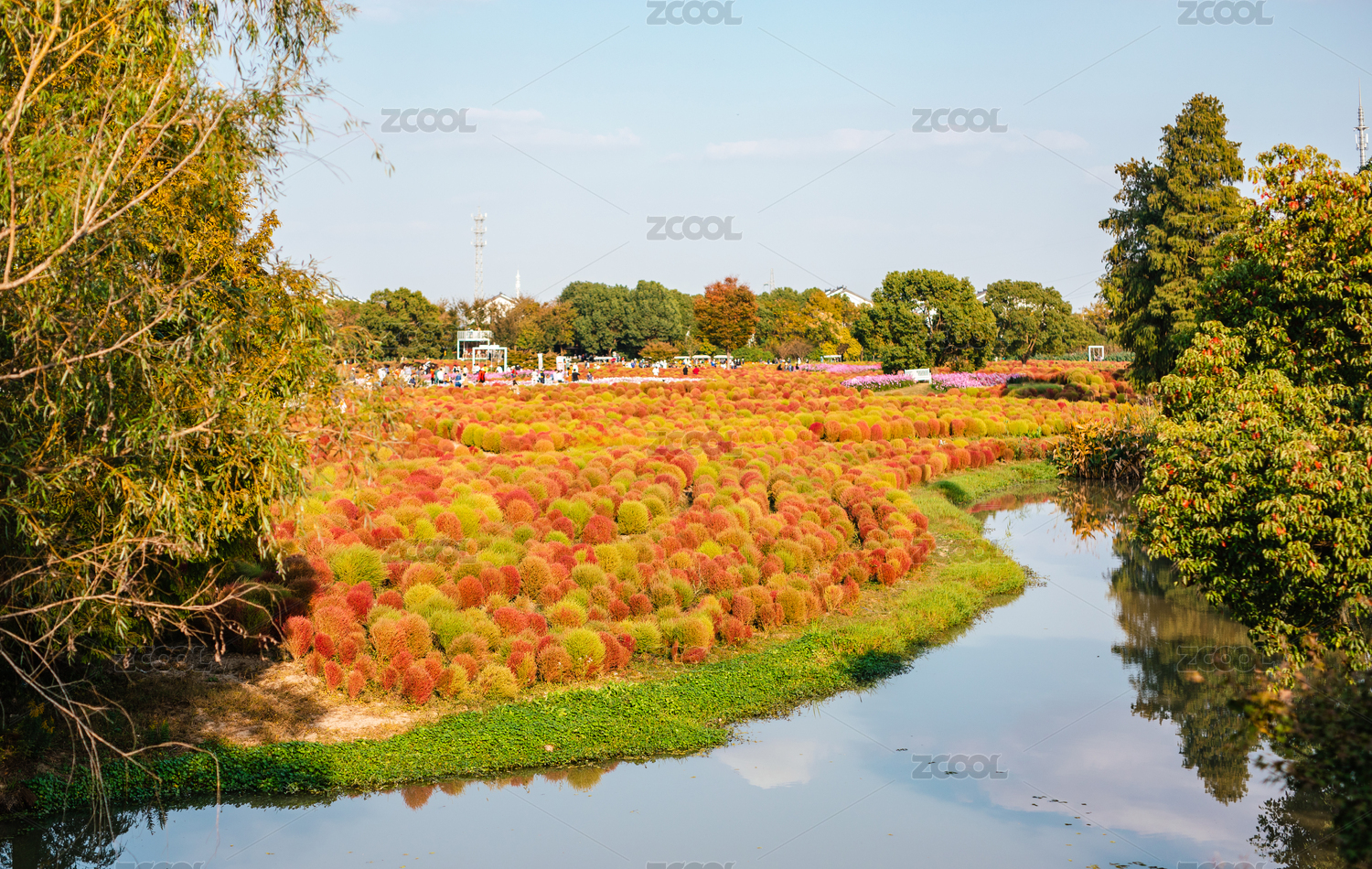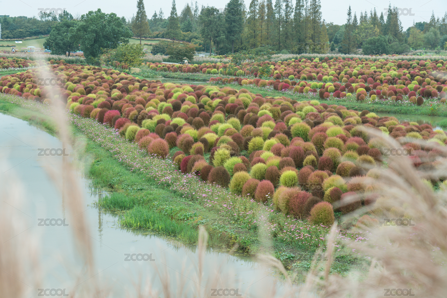 秋天上海金山花開海上生態(tài)園地膚紅了