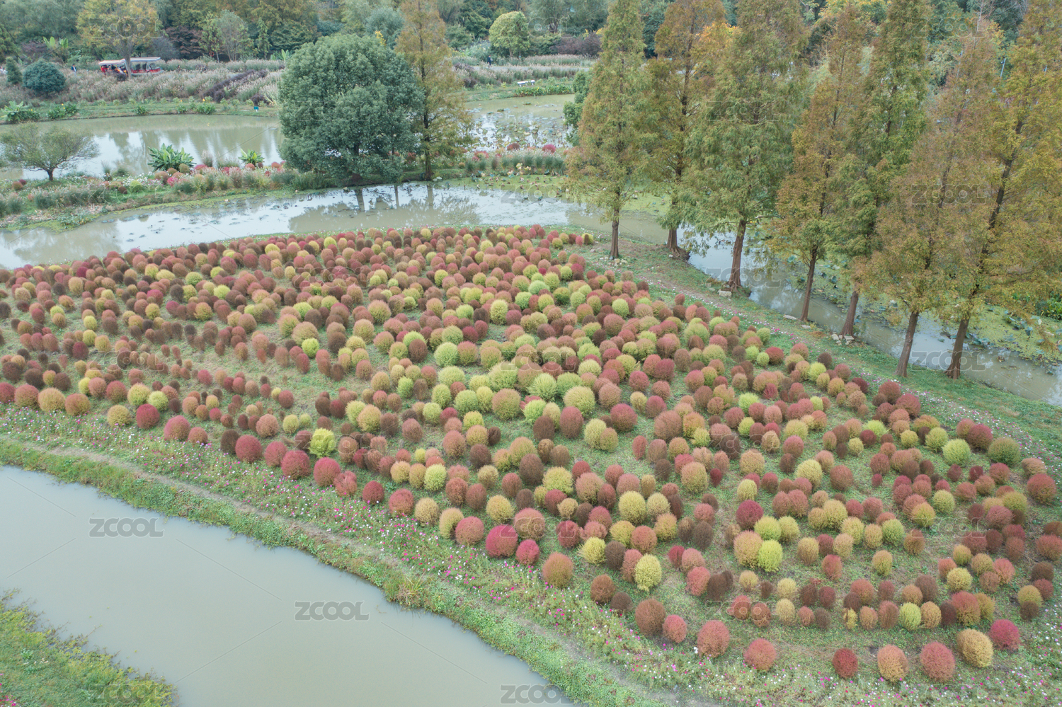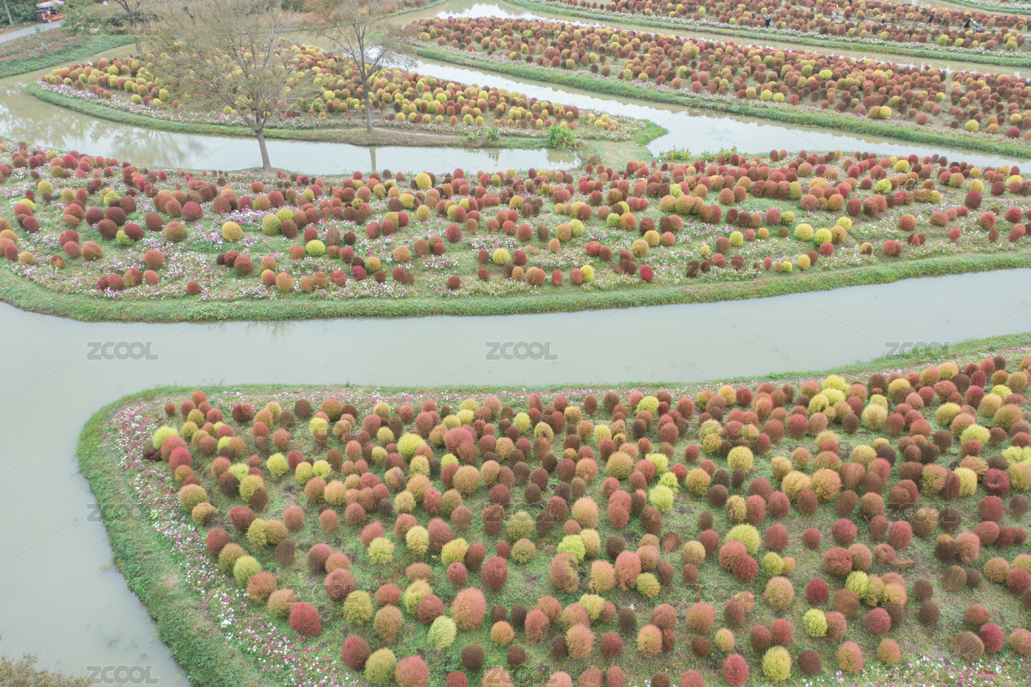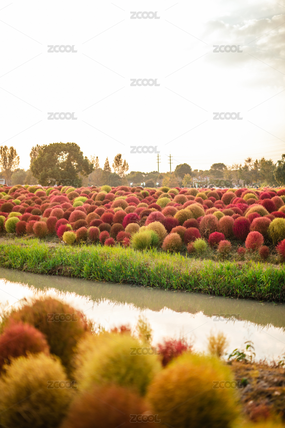 秋天上海金山花開海上生態(tài)園地膚紅了