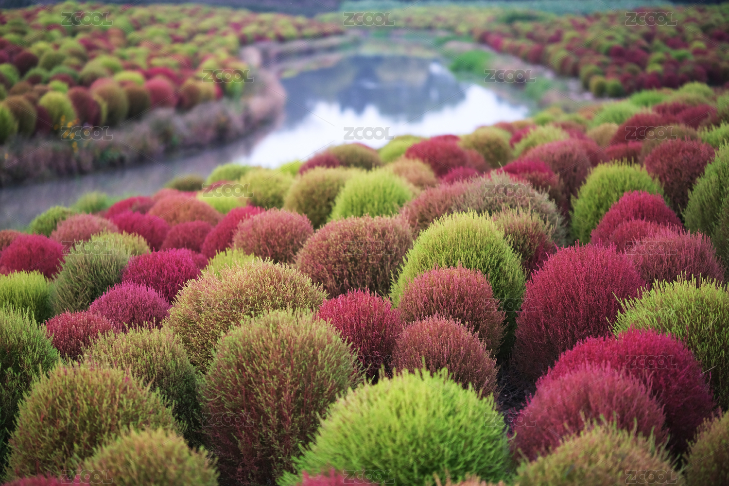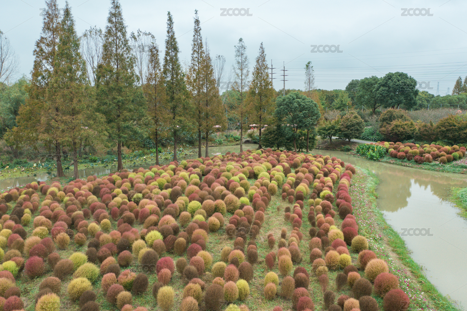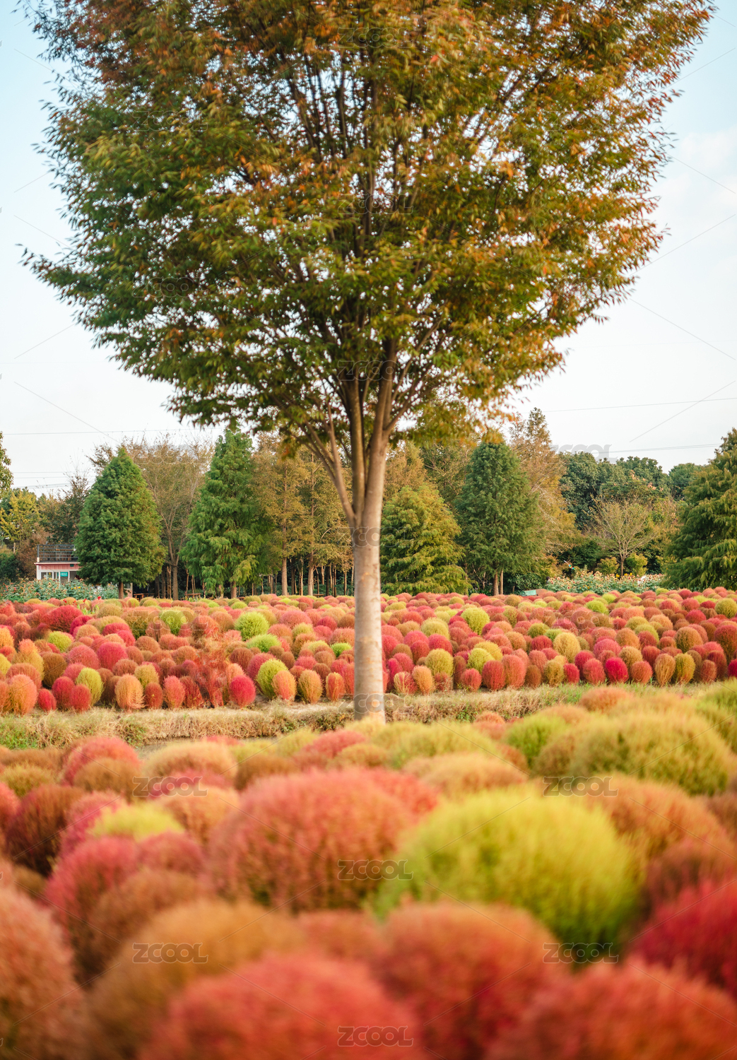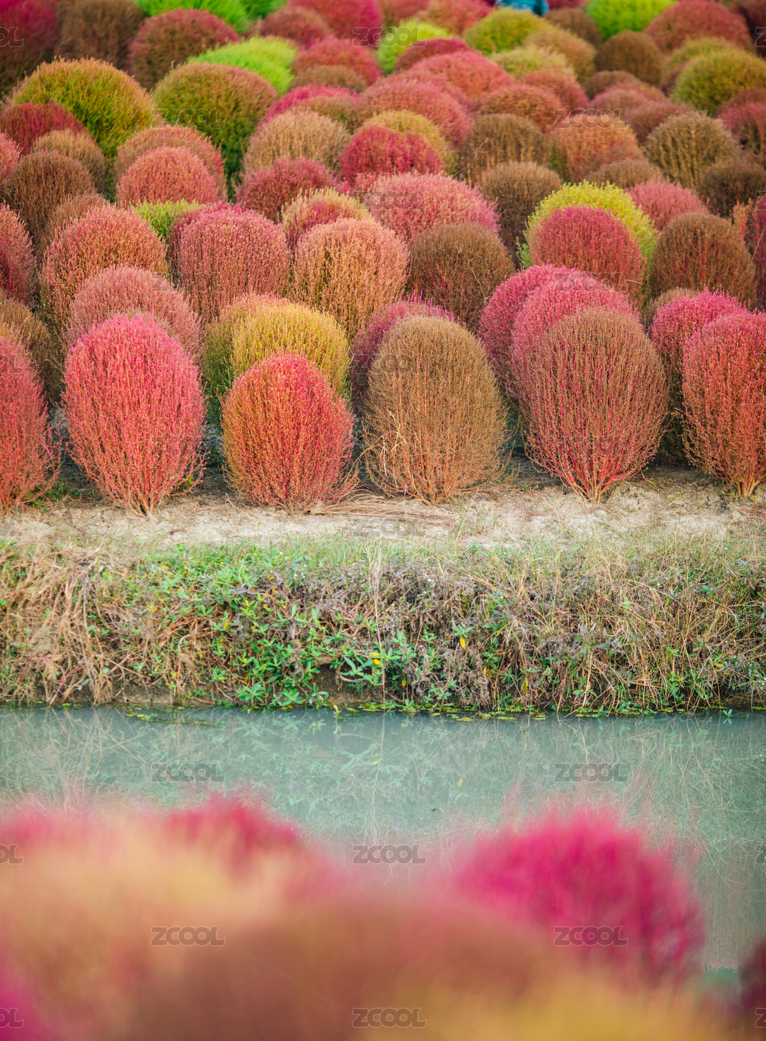 秋天上海金山花開海上生態(tài)園地膚紅了
