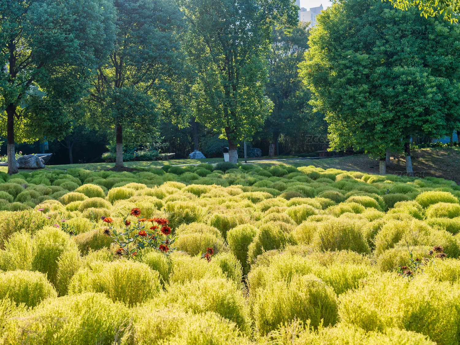 上海金山花開海上生態(tài)園內(nèi)的地膚草景觀