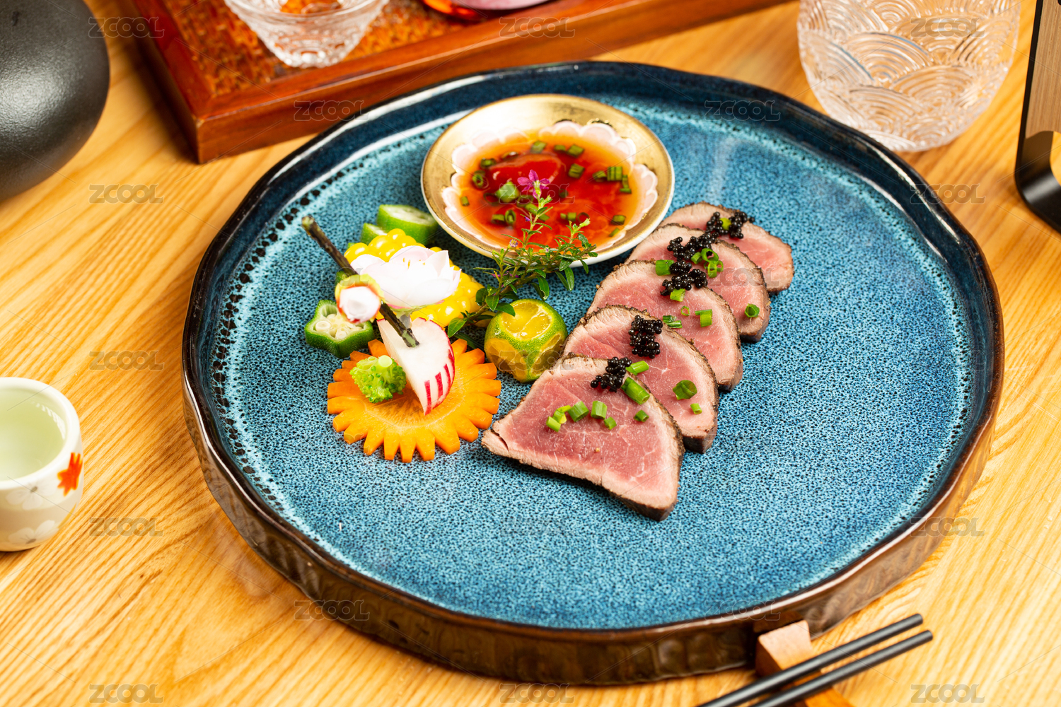 擺盤(pán)精致的牛排搭配魚(yú)籽醬