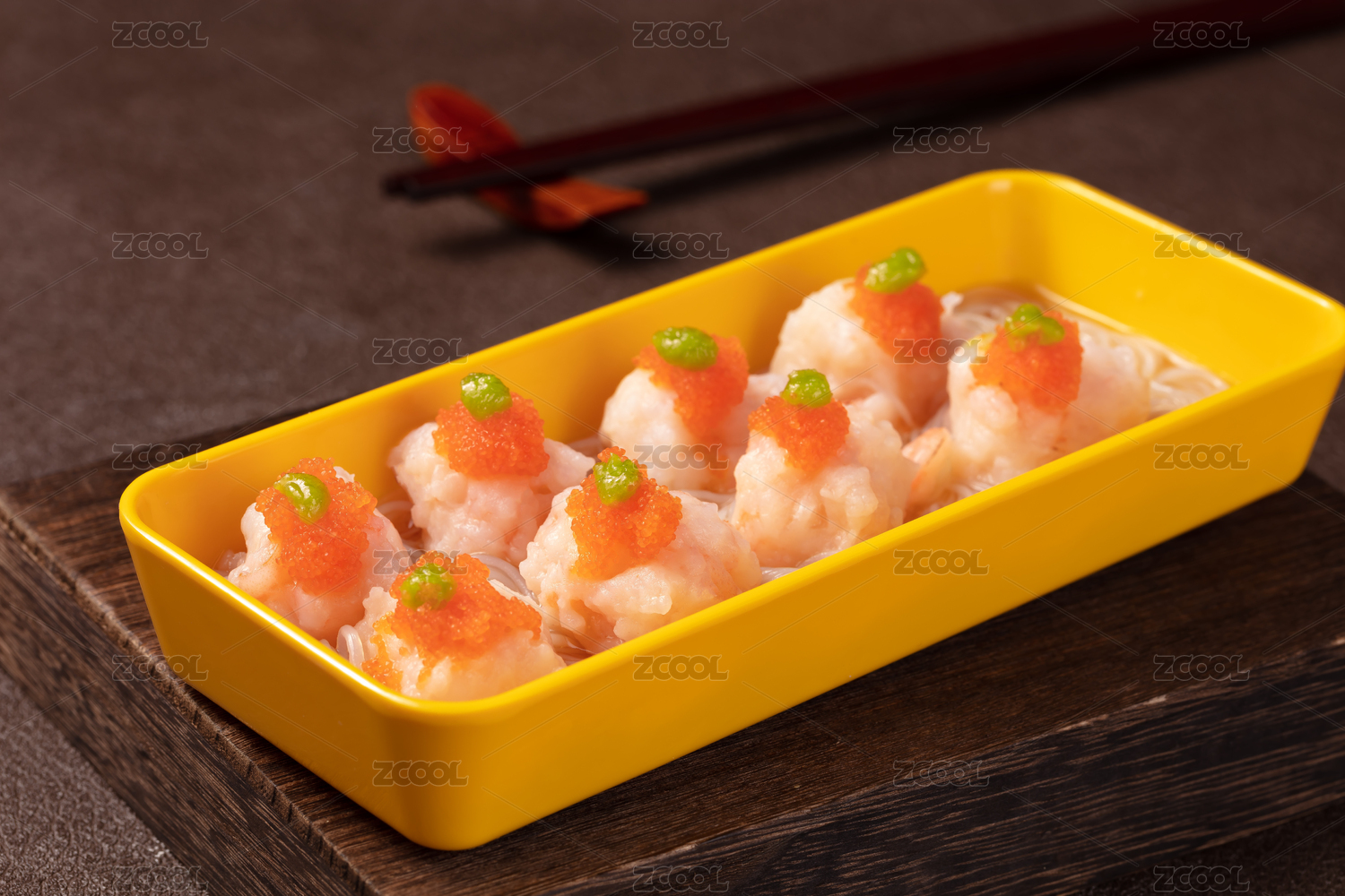 黃色盒子里的街邊頭小吃魚(yú)籽醬蝦滑