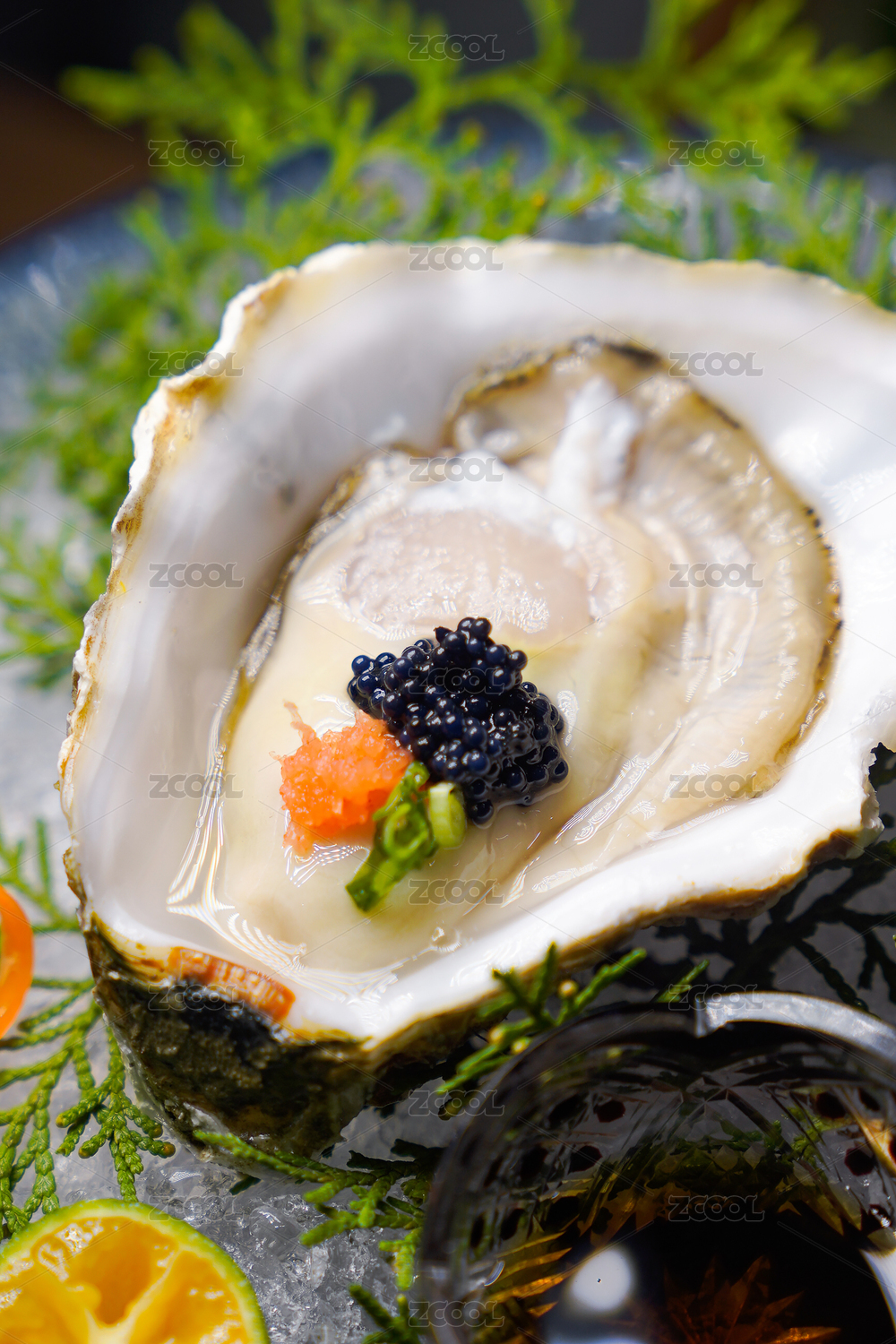 一個(gè)放魚(yú)籽醬的生蠔刺身