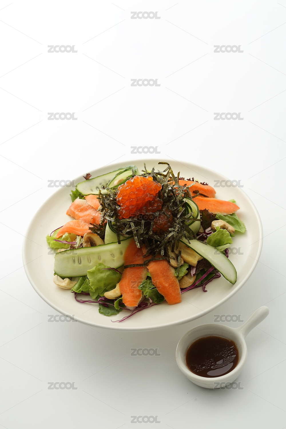盤(pán)子里的健身營(yíng)養(yǎng)減肥日式魚(yú)籽醬蔬菜沙拉